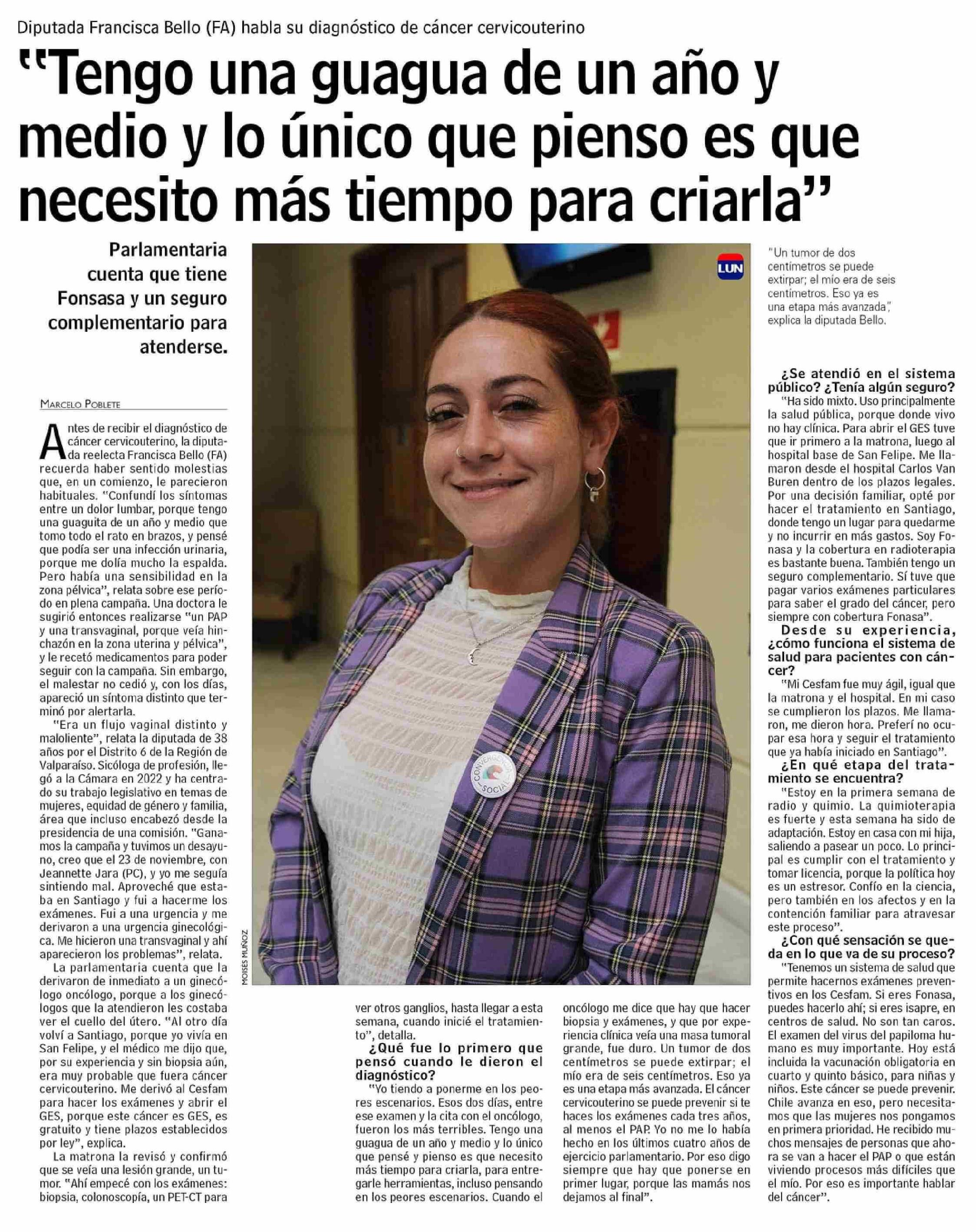 Título: "Tengo una guagua de un año y medio y lo único que pienso es que necesito más tiempo para criarla"