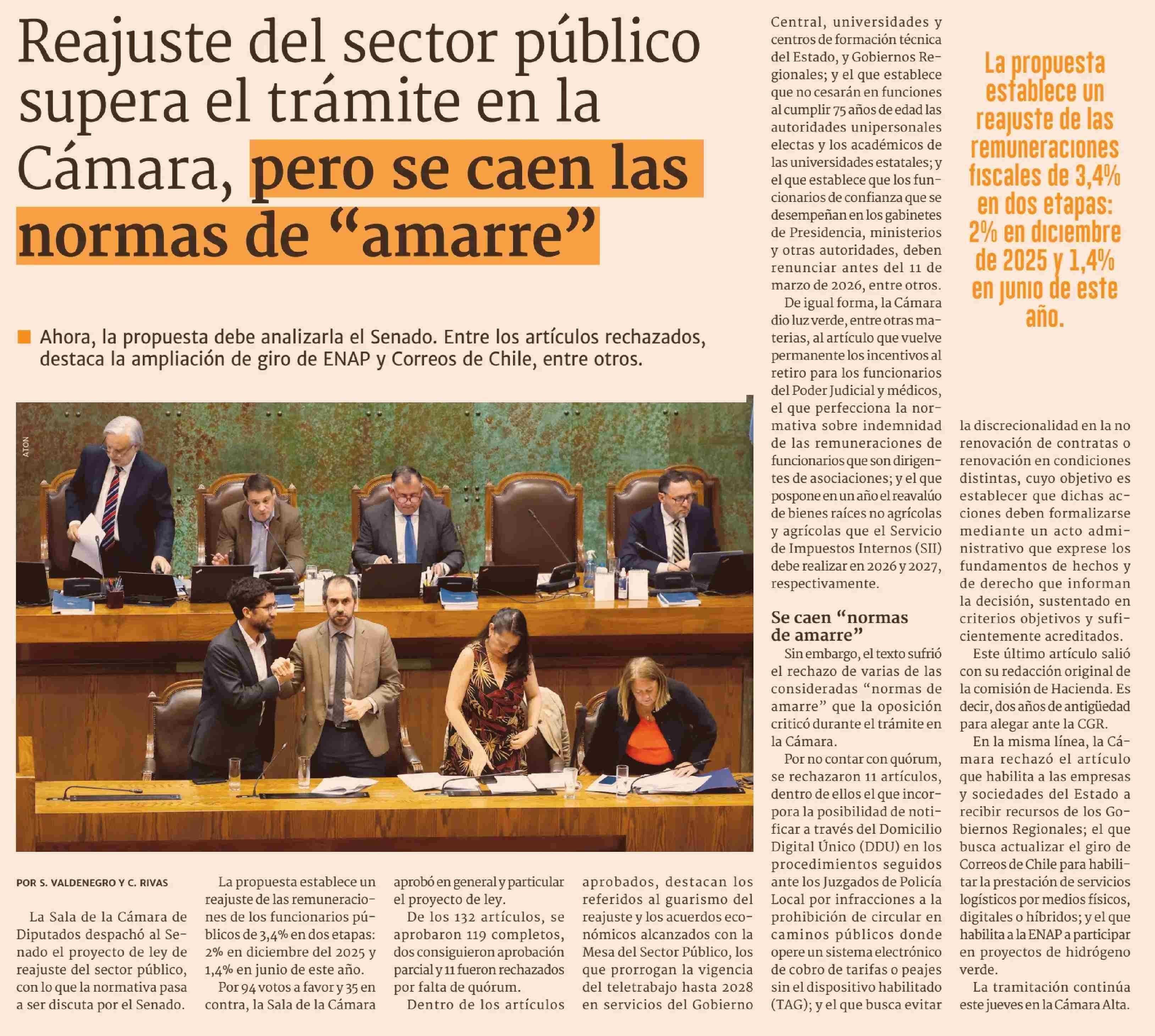 Reajuste del sector público supera el trámite en la Cámara, pero se caen las normas de "amarre
