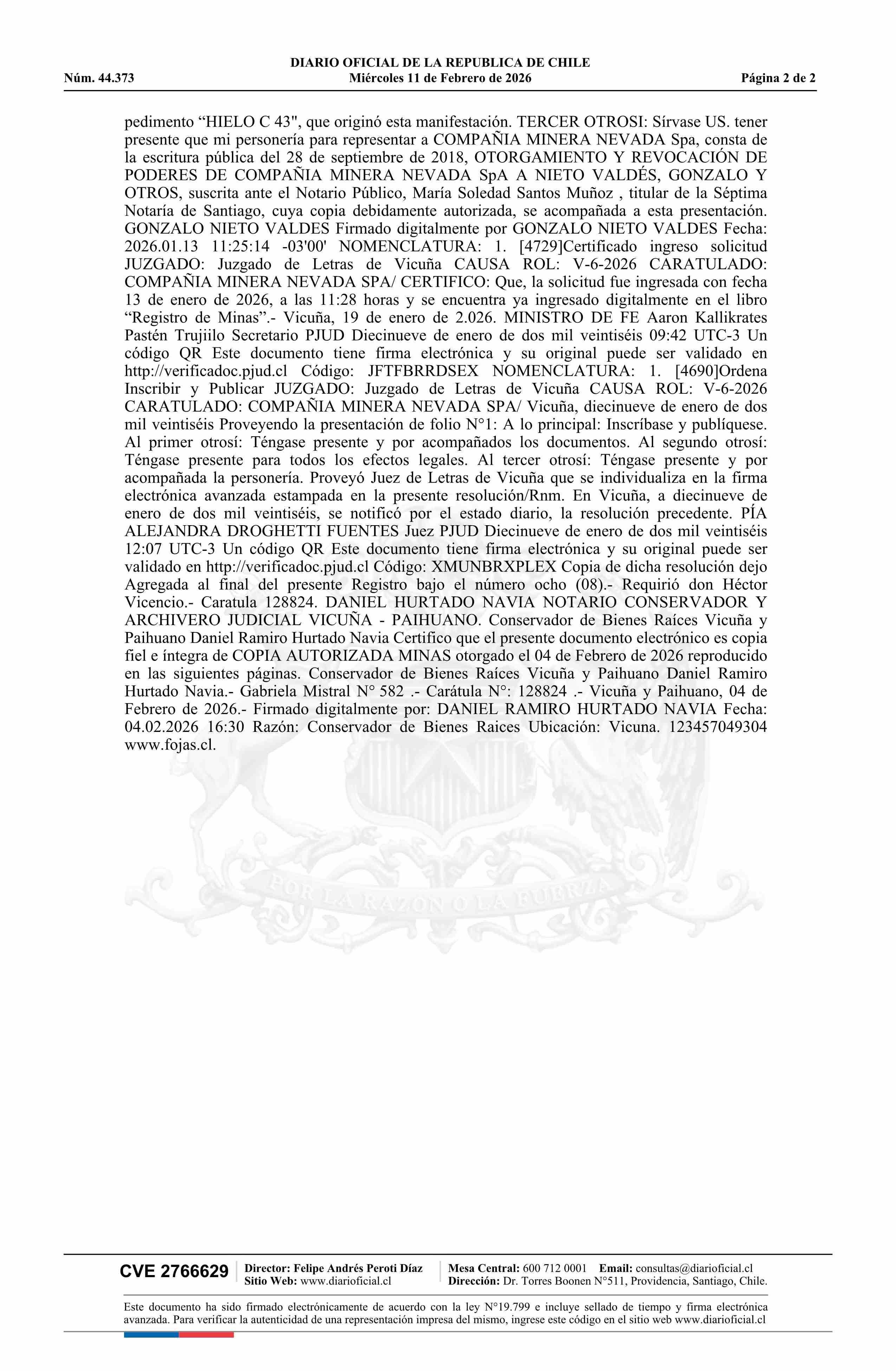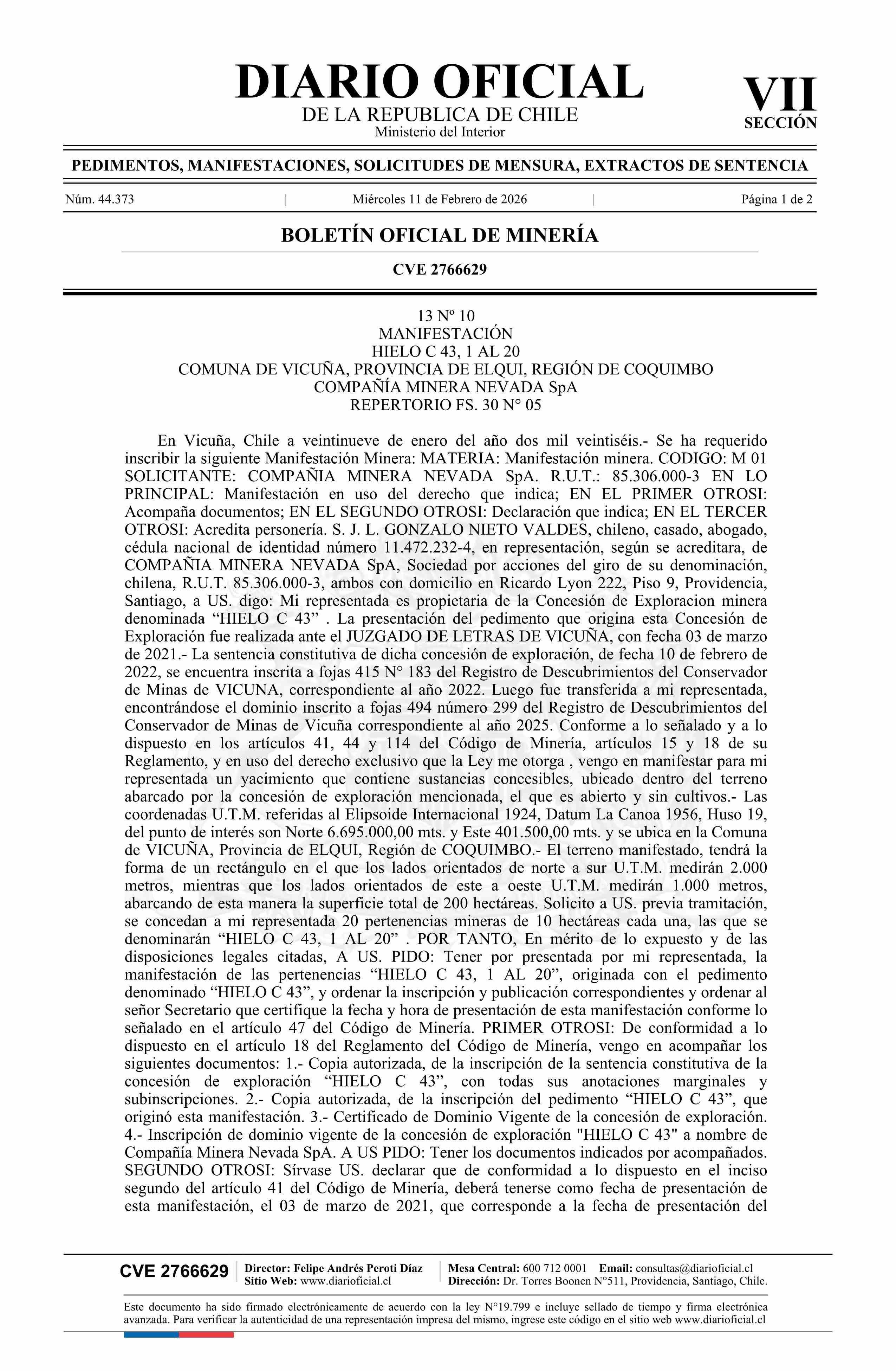 HIELO C 43, 1 AL 20 / Compañía Minera Nevada SpA