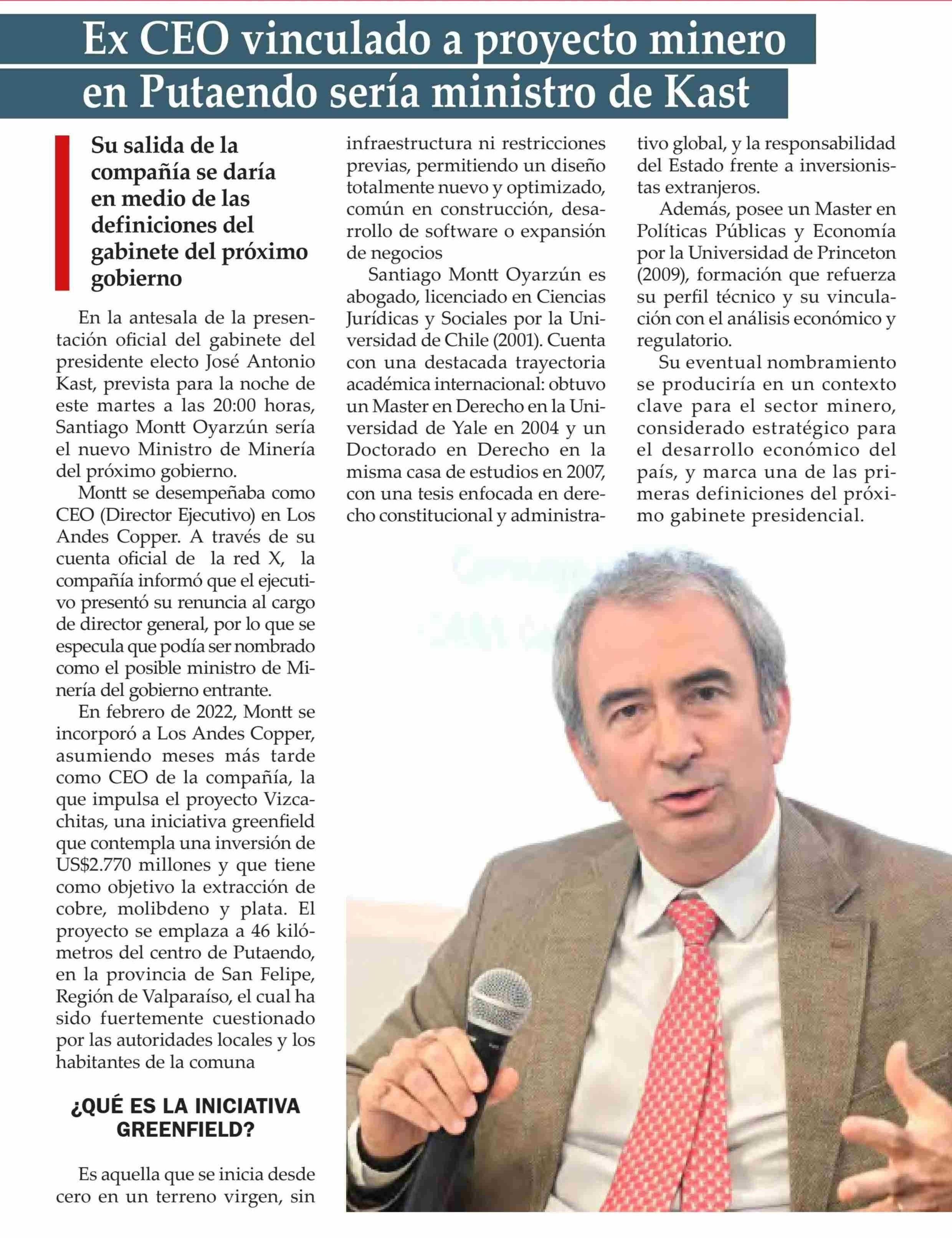 ____ Ex CEO vinculado a proyecto minero en Putaendo sería ministro de Kast