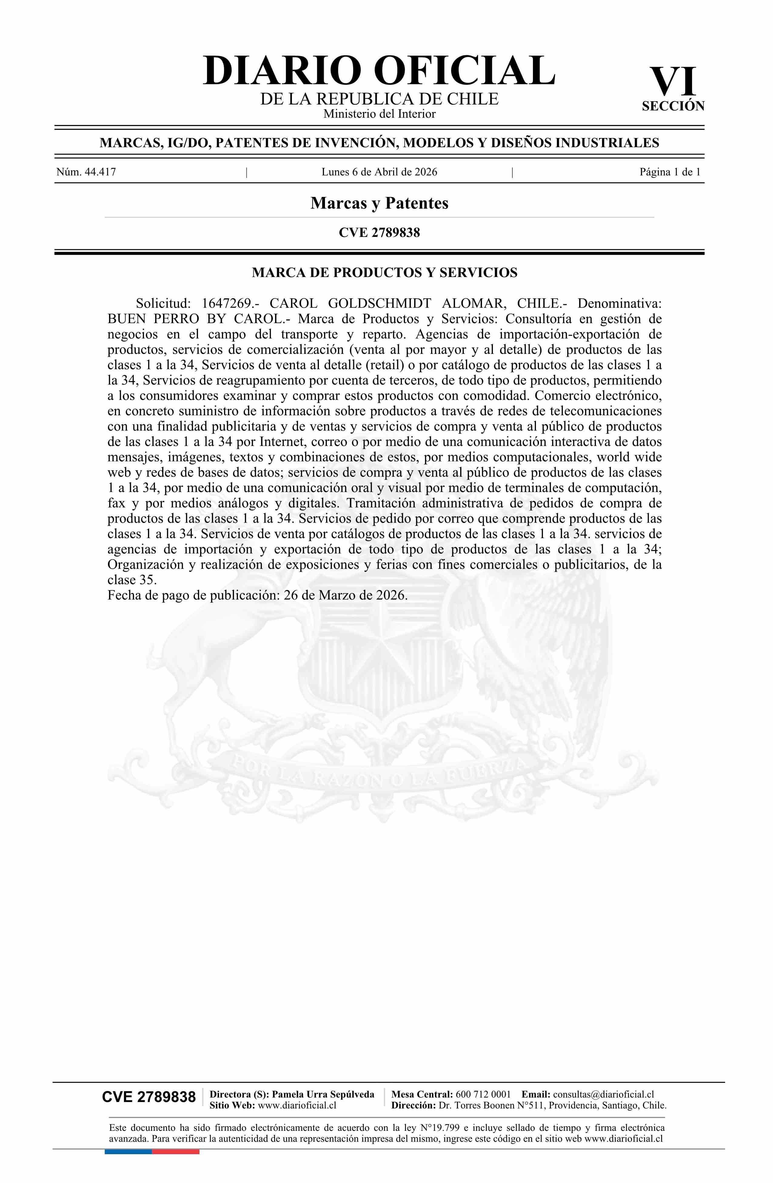 Solicitud número 1647269.- BUEN PERRO BY CAROL