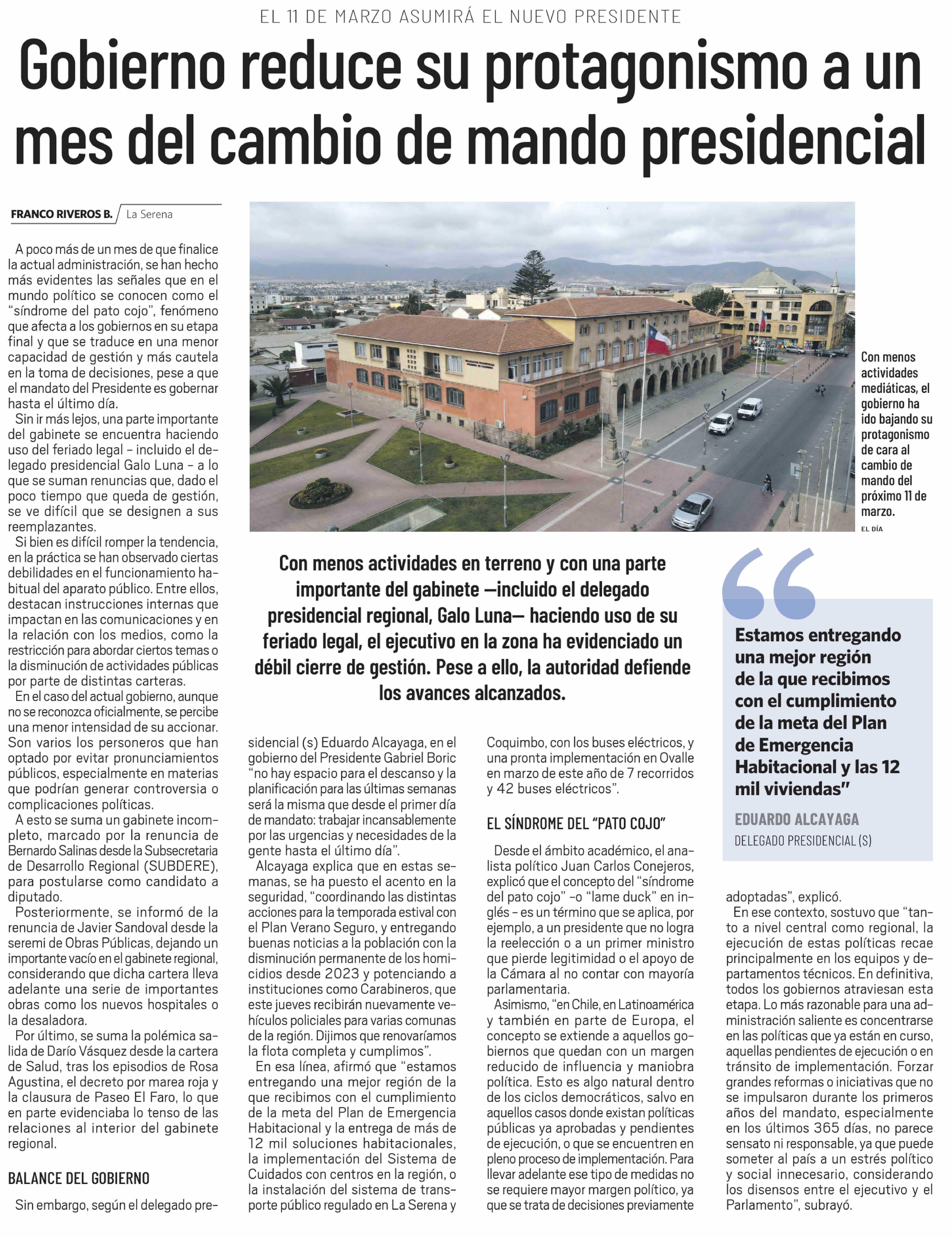 Gobierno reduce su protagonismo a un mes del cambio de mando presidencial