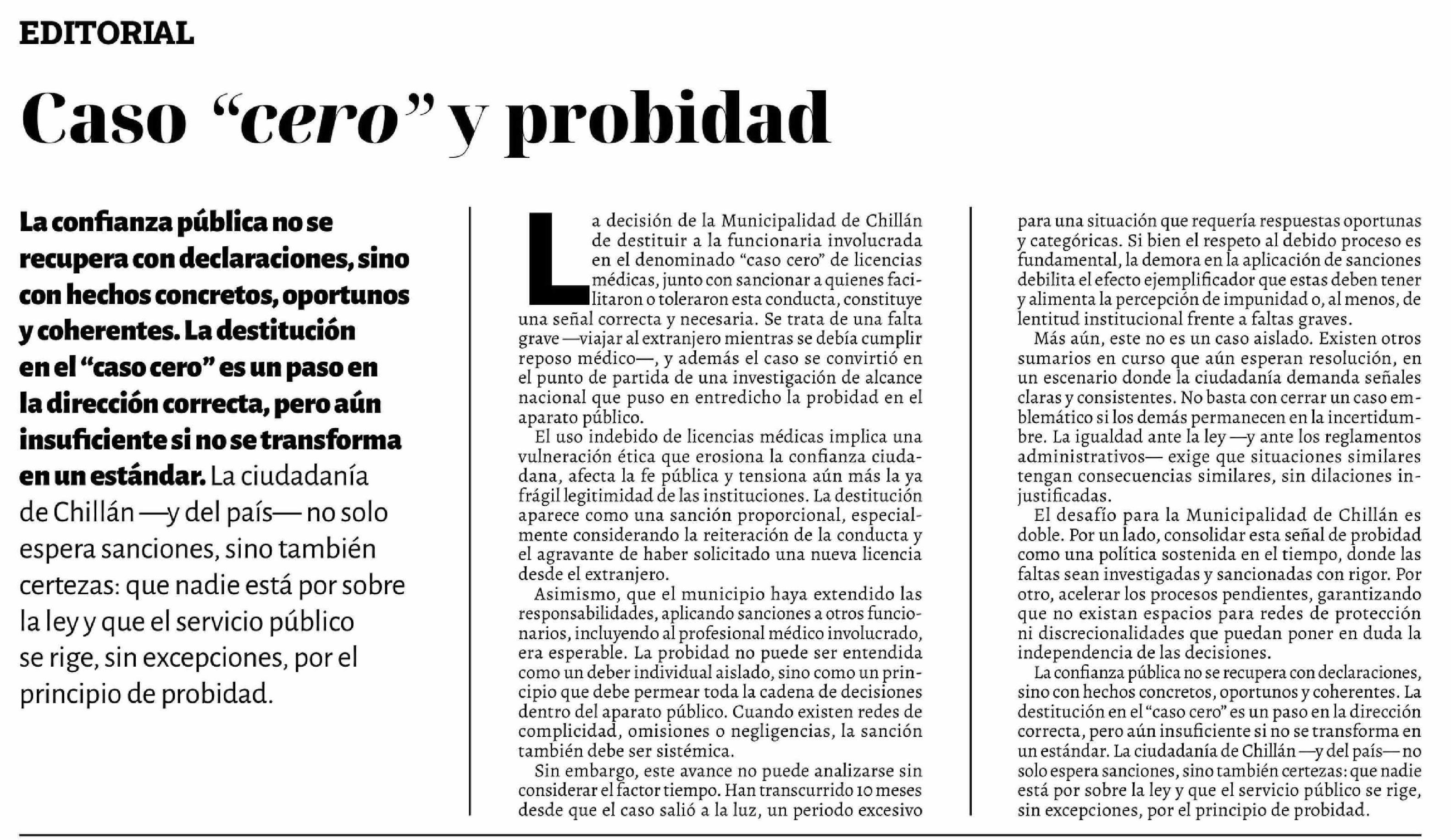Título: Editorial: Caso "cero" y probidad