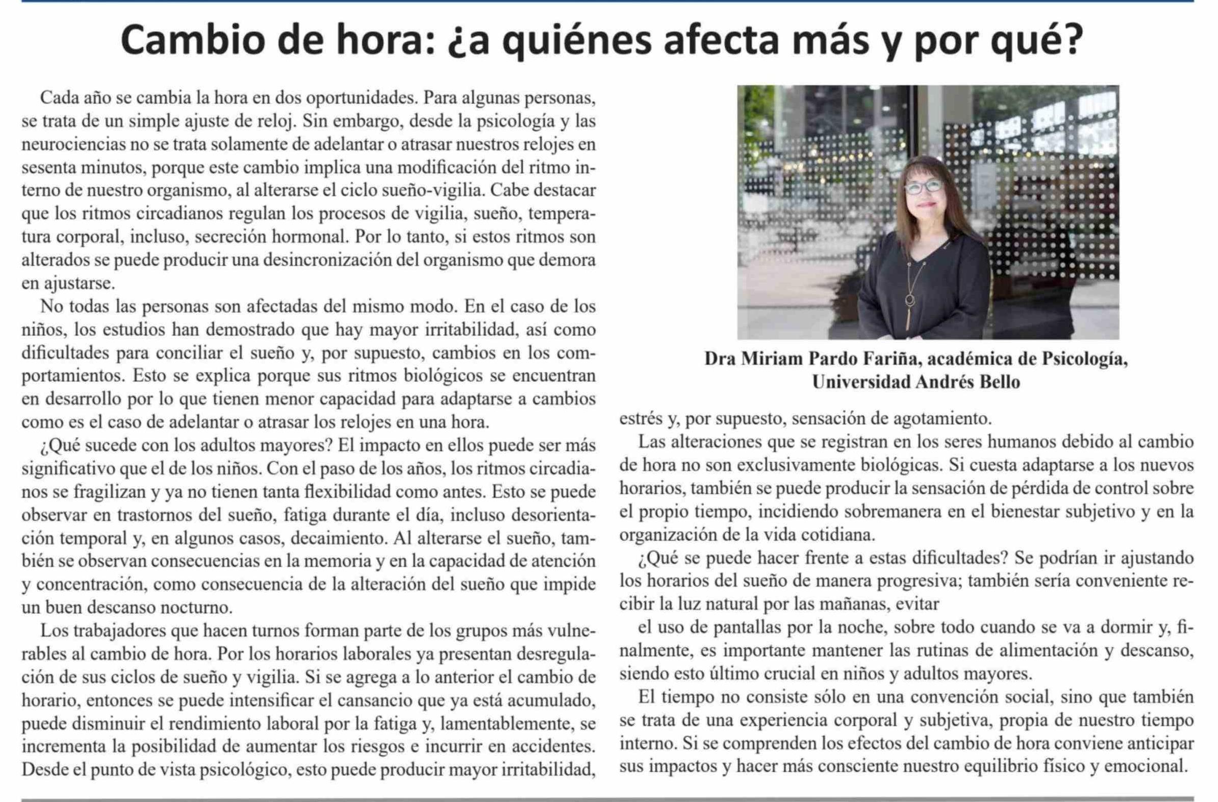 Columnas de Opinión: Cambio de hora: ¿ a quiénes afecta más y por qué?