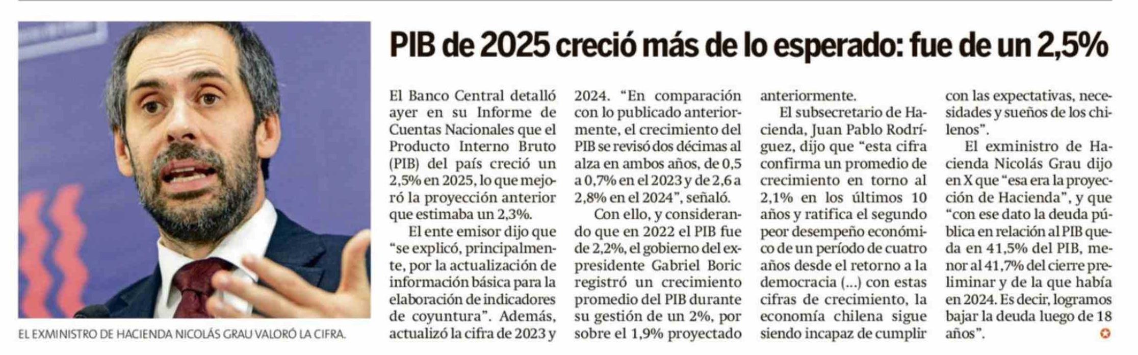 PIB de 2025 creció más de lo esperado: fue de un 2,5%
