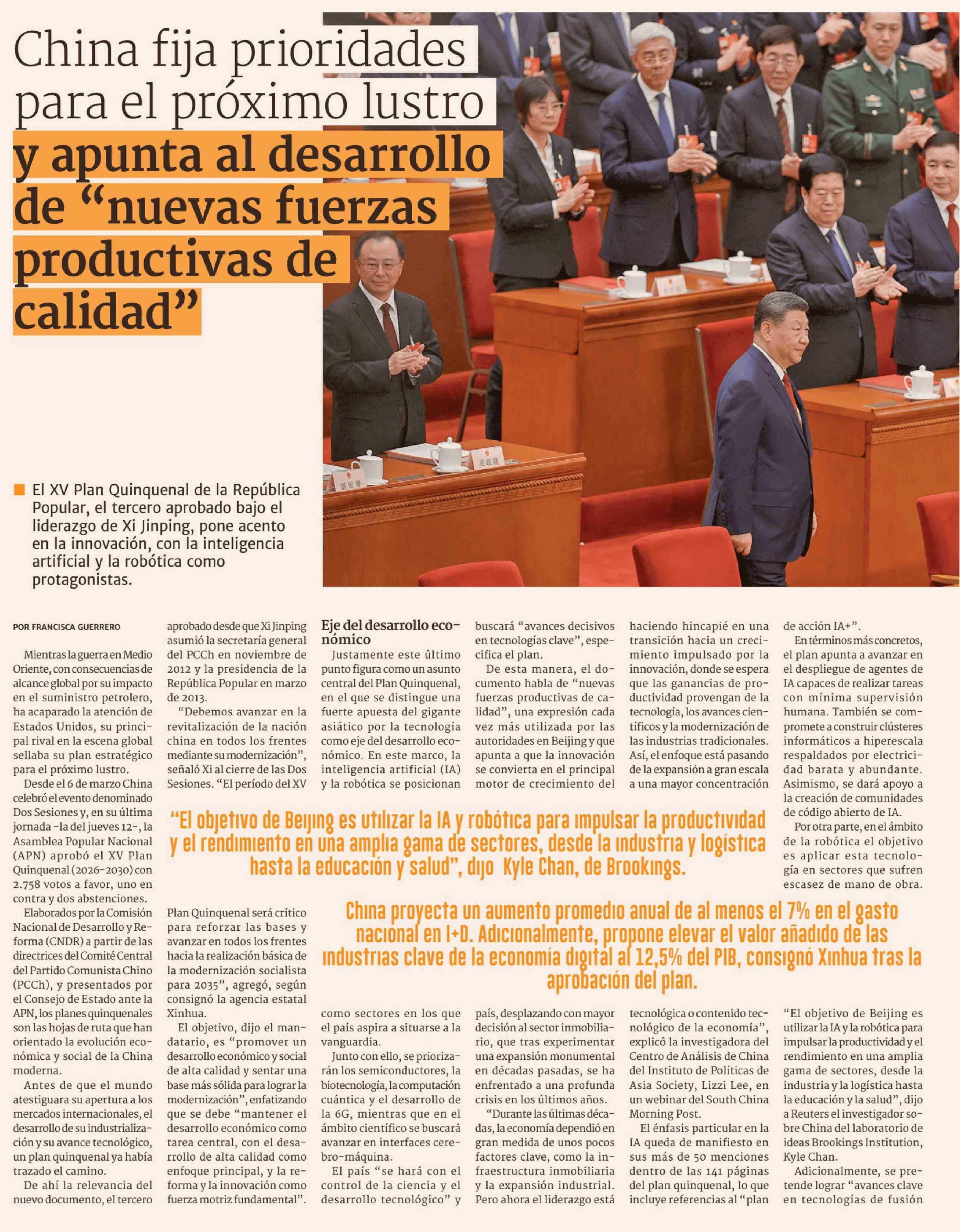 China fija prioridades para el próximo lustro y apunta al desarrollo de "nuevas fuerzas productivas de calidad"