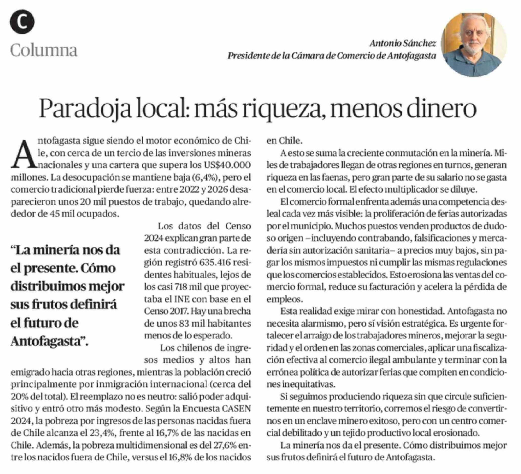 Columnas de Opinión: Paradoja local: más riqueza, menos dinero