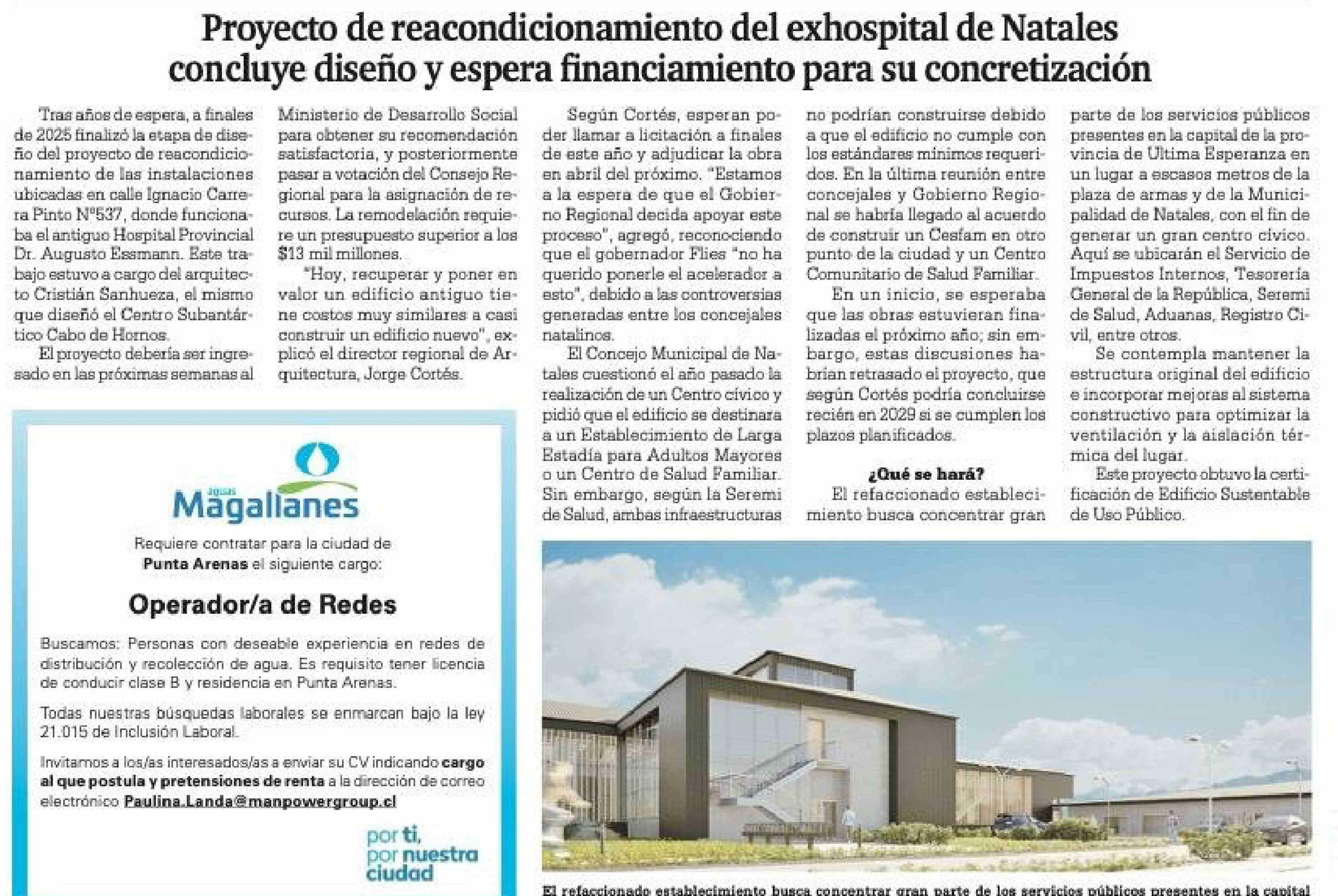 | Título: | Proyecto de reacondicionamiento del exhospital de Natales concluye diseño y espera financiamiento para su concretización |