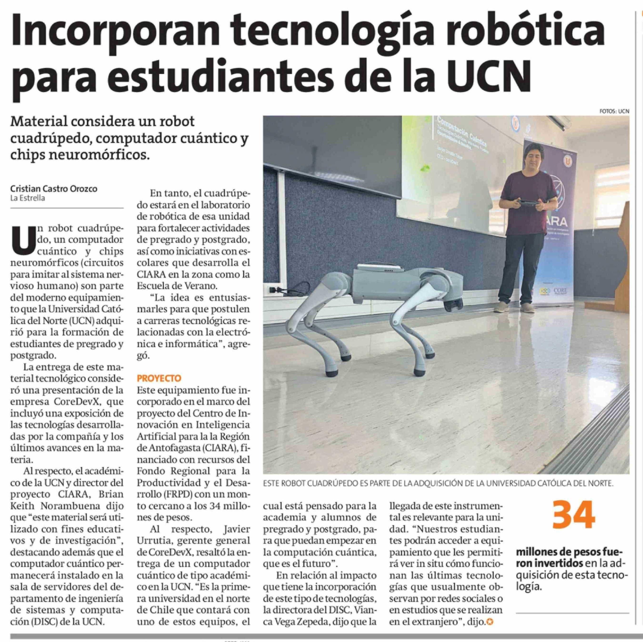 Incorporan tecnología robótica para estudiantes de la UCN