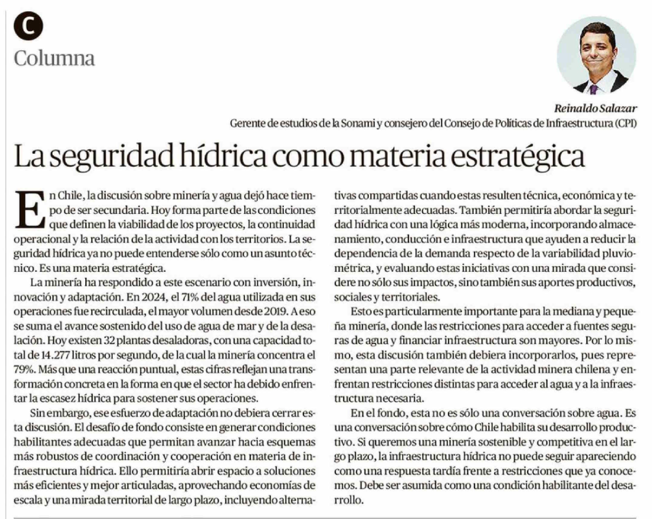 Columnas de Opinión: La seguridad hídrica como materia estratégica