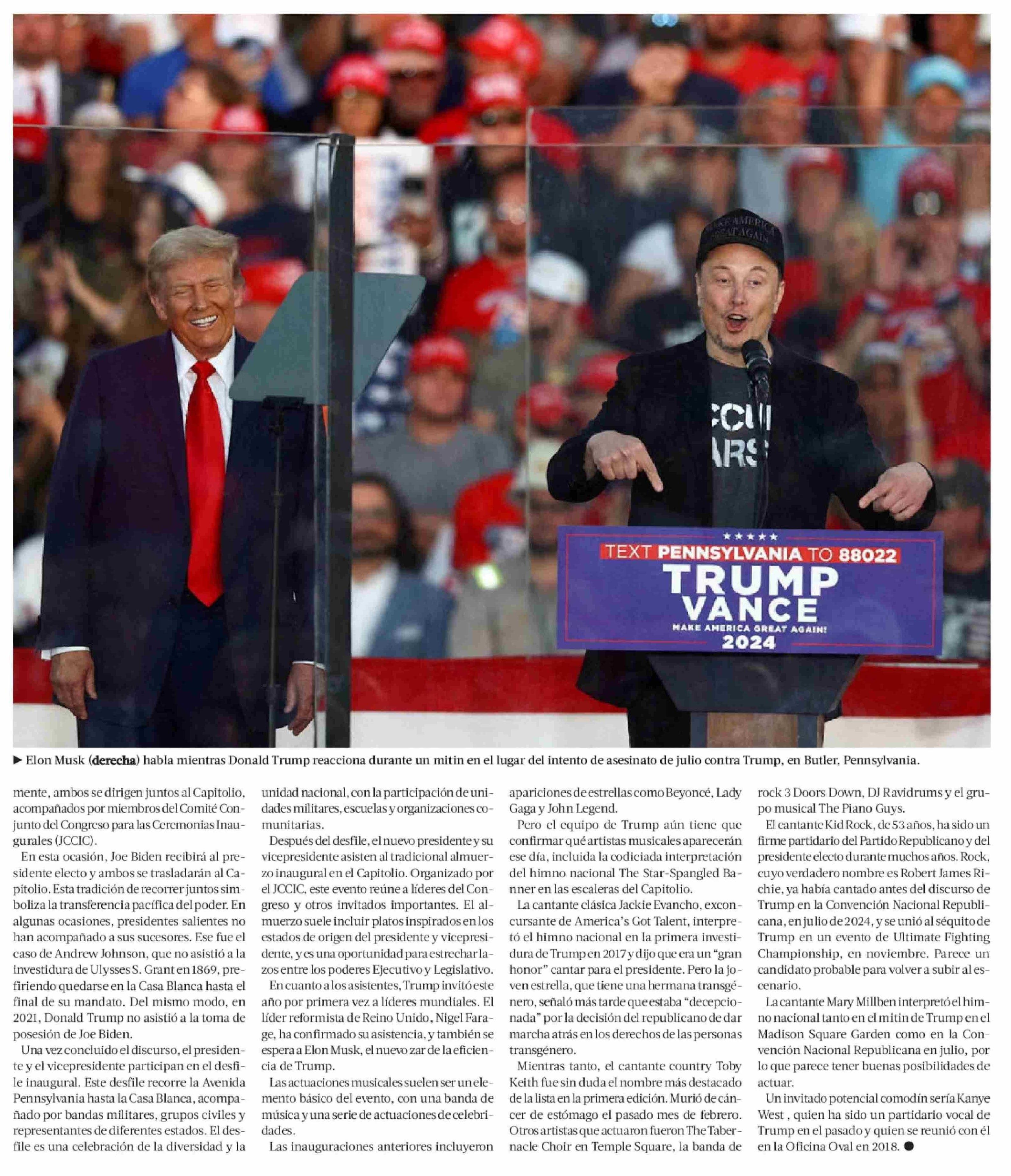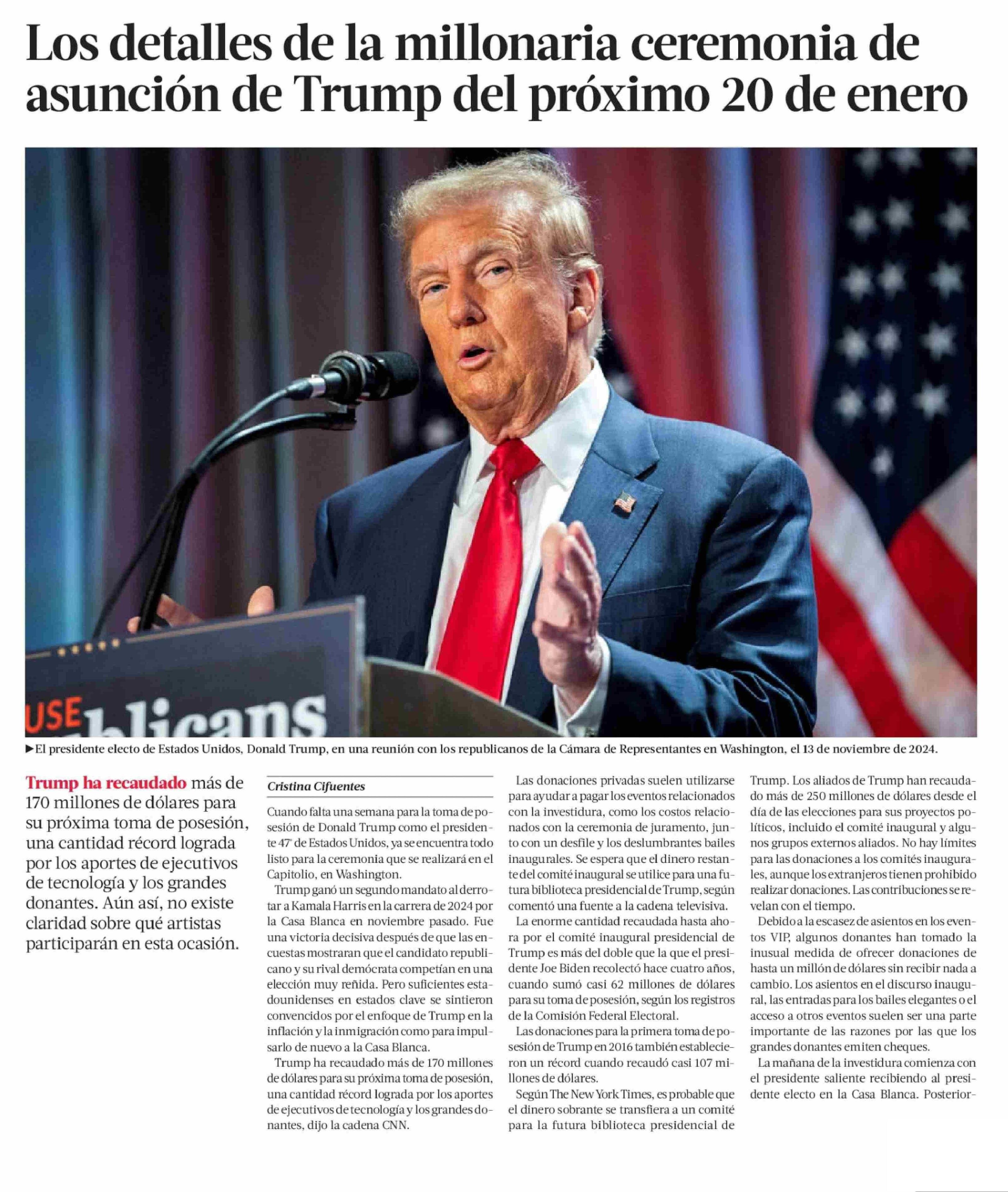 Los detalles de la millonaria ceremonia de asunción de Trump del próximo 20 de enero