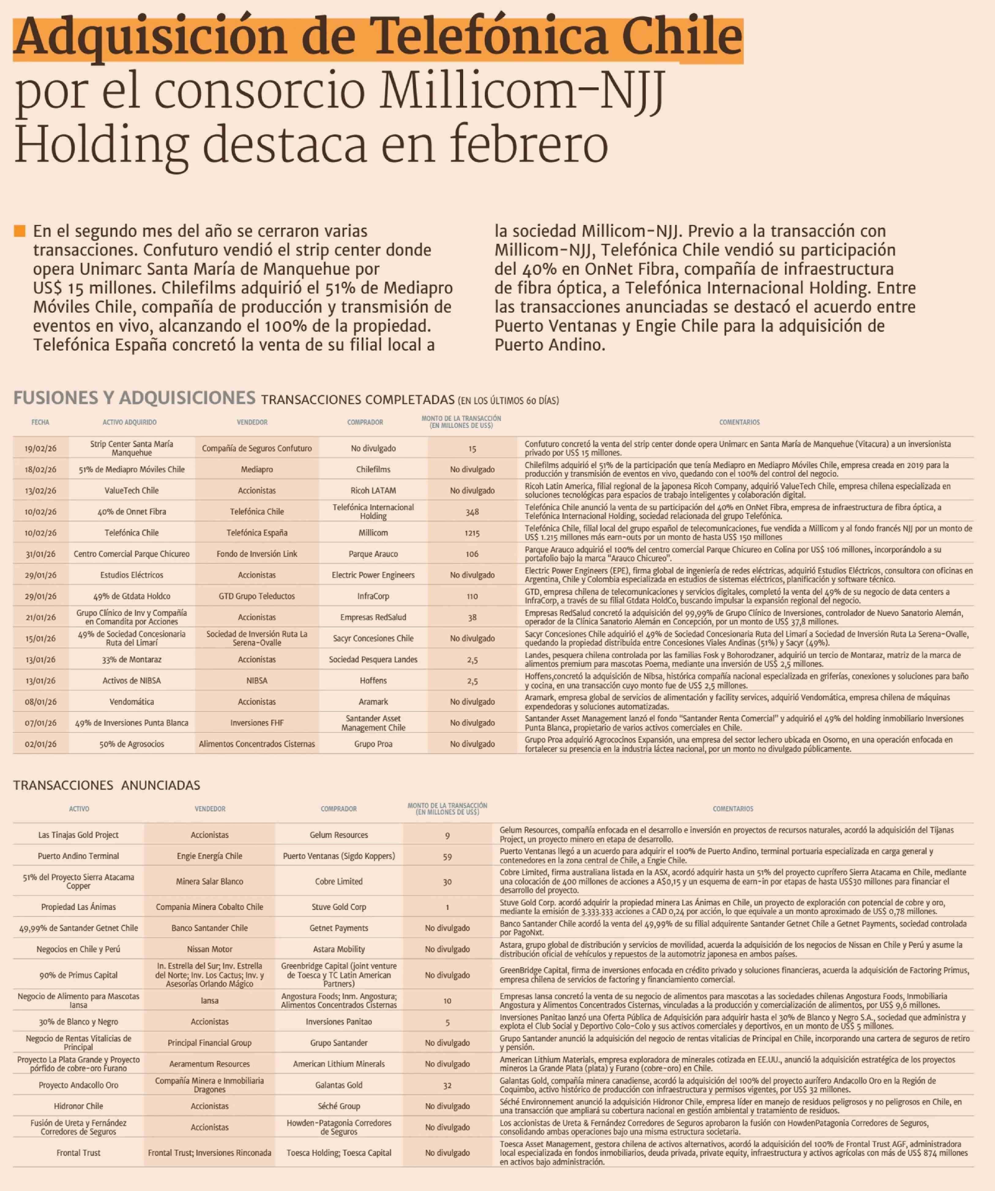 Título: Adquisición de Telefónica Chile por el consorcio Millicom-NJJ Holding destaca en febrero
