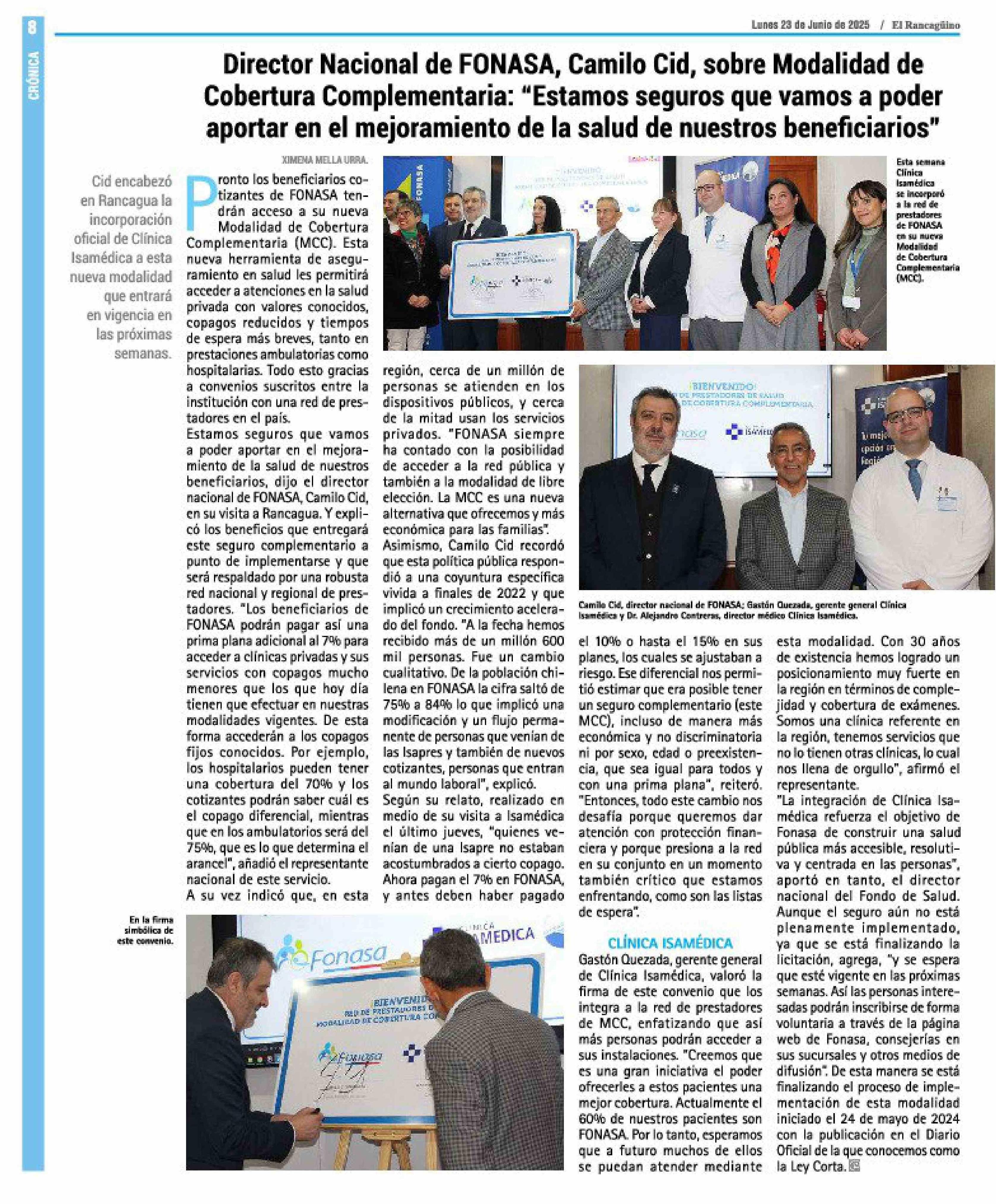 | Título: | Director Nacional de FONASA, Camilo Cid, sobre Modalidad de Cobertura Complementaria: “Estamos seguros que vamos a poder aportar en el mejoramiento de la salud de nuestros beneficiarios” |