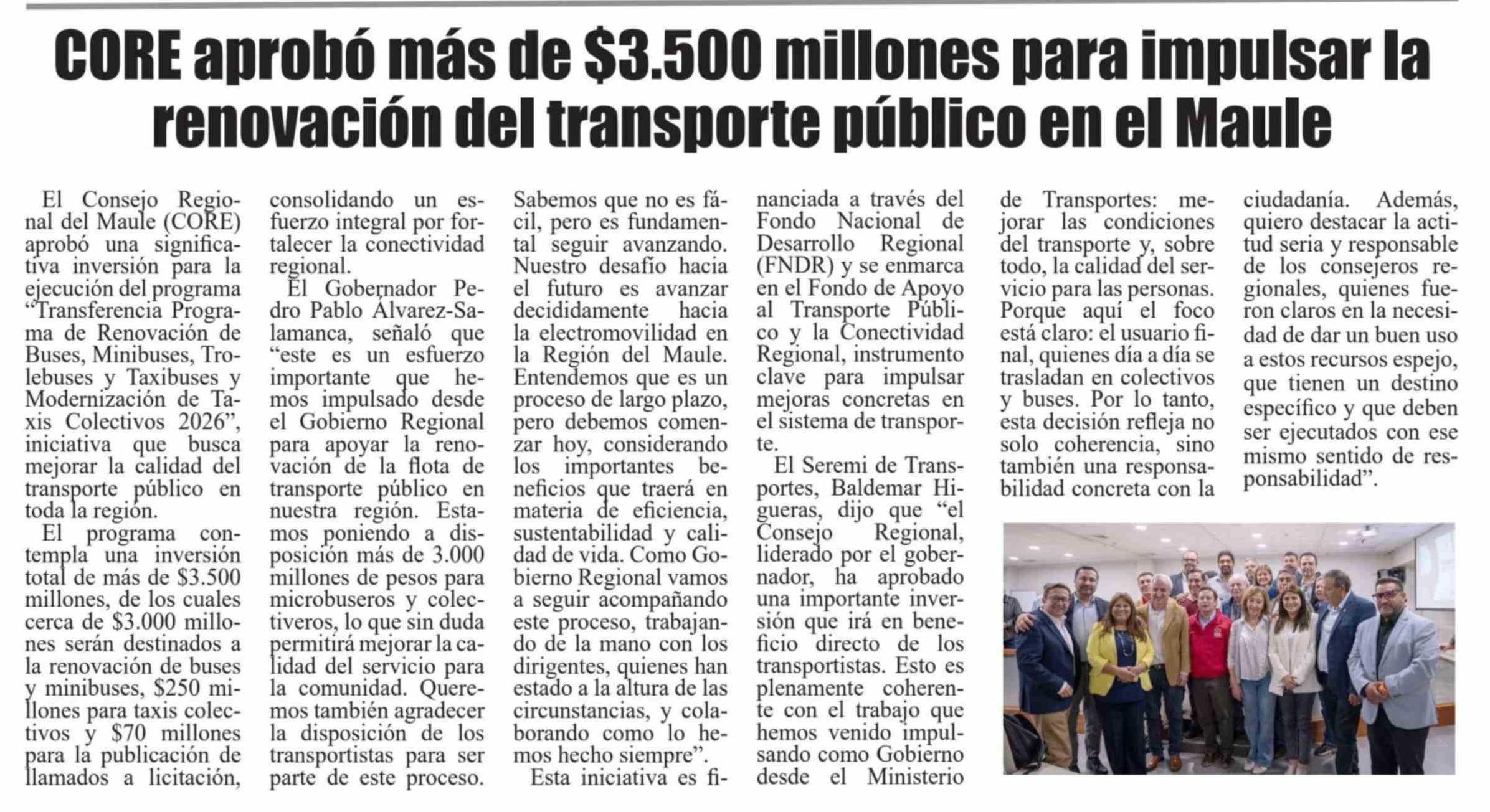 CORE aprobó más de $3.500 millones para impulsar la renovación del transporte público en el Maule
