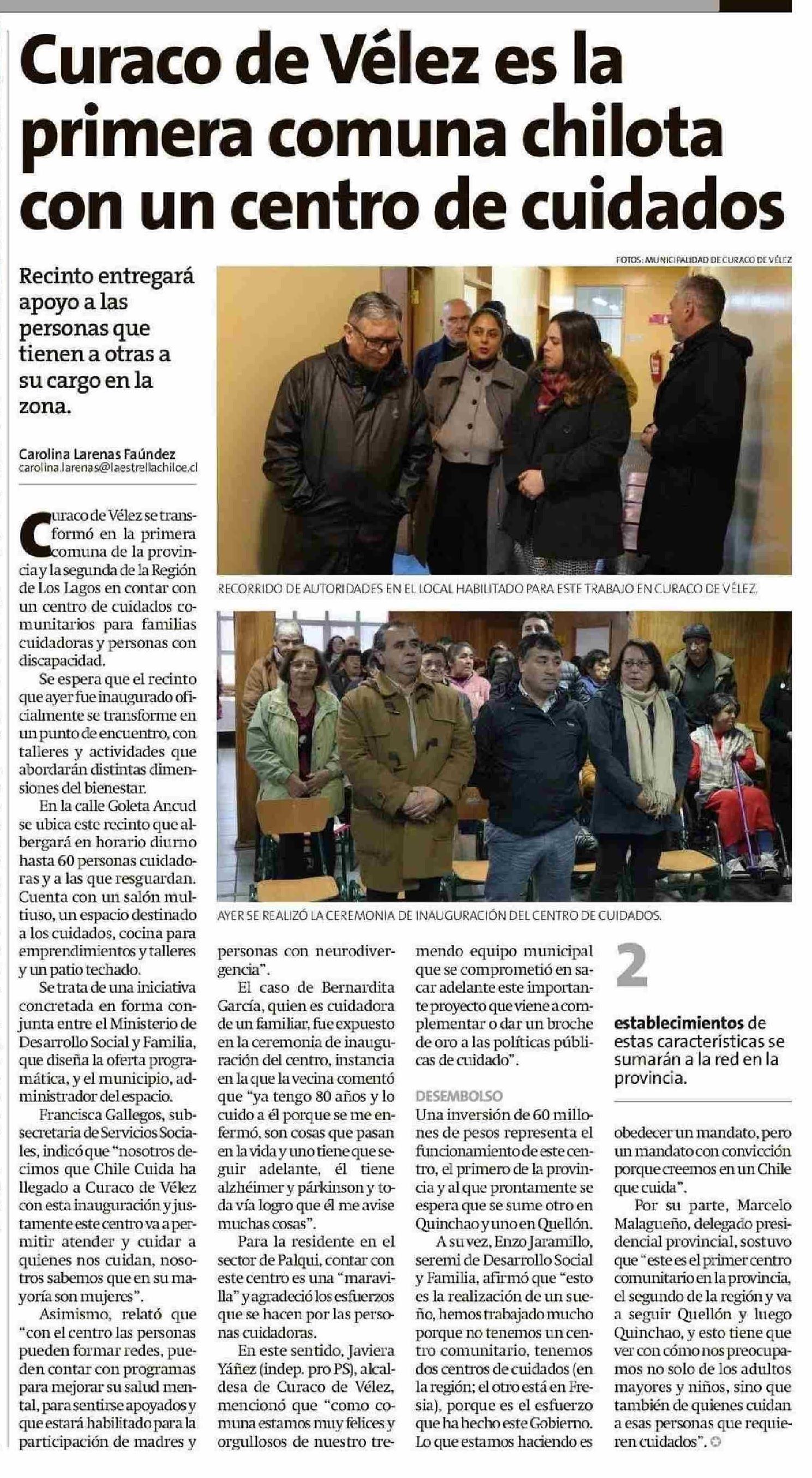 Curaco de Vélez es la primera comuna chilota con un centro de cuidados