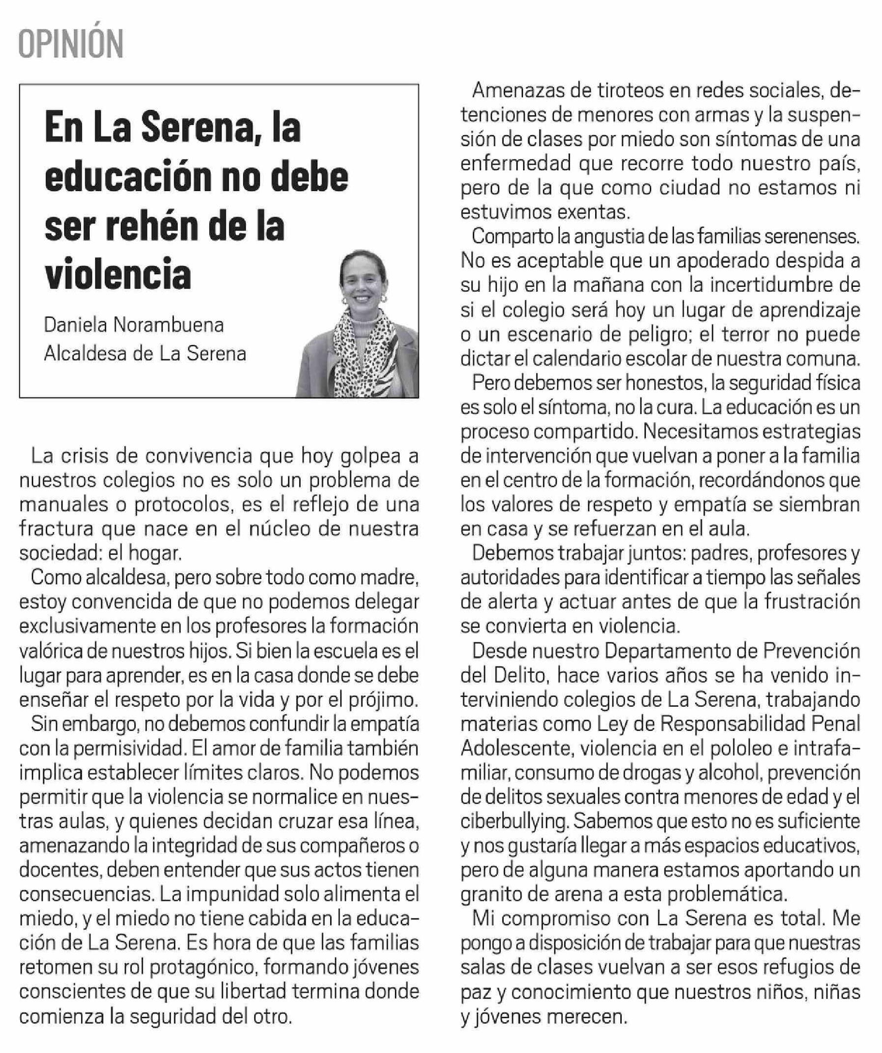 Columnas de Opinión: En La Serena, la educación no debe ser rehén de la violencia