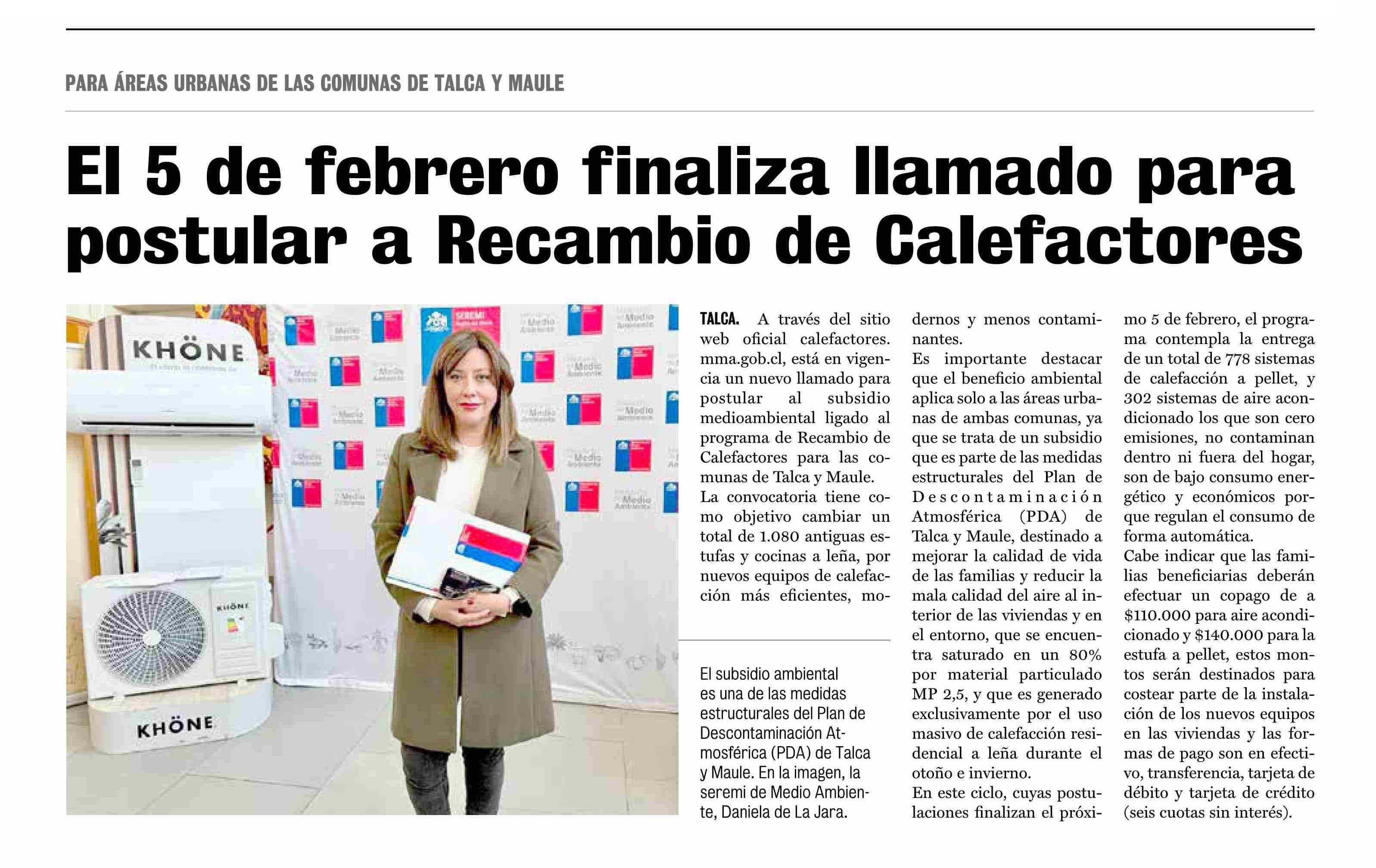 El 5 de febrero finaliza llamado para postular a Recambio de Calefactores