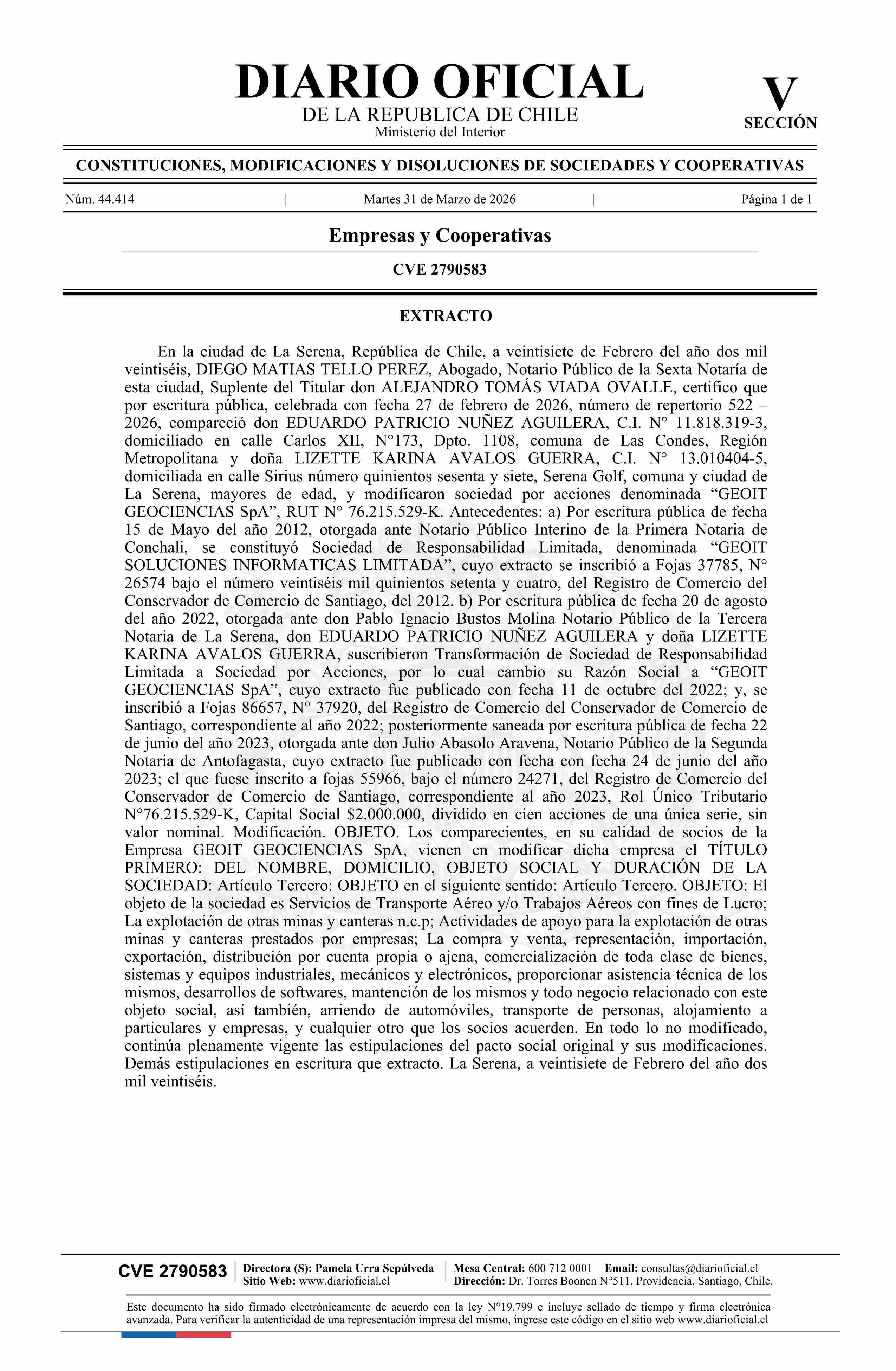 GEOIT GEOCIENCIAS SpA 76.215.529-K*