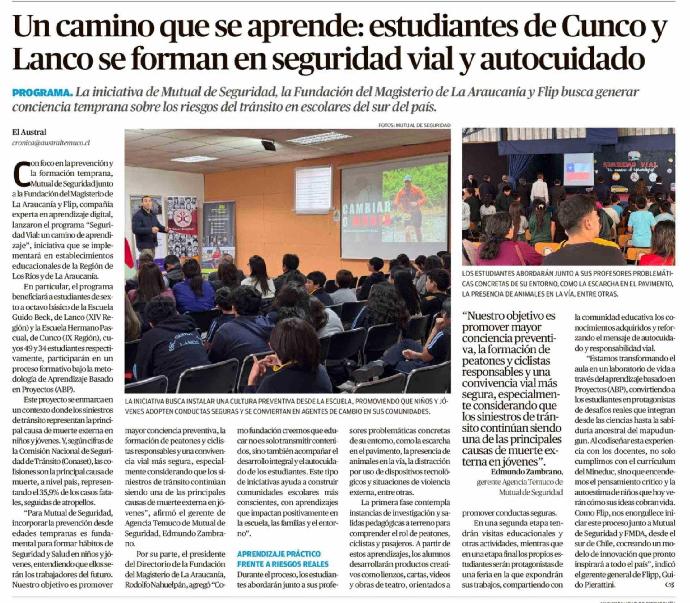 Un camino que se aprende: estudiantes de Cunco y Lanco se forman en seguridad vial y autocuidado