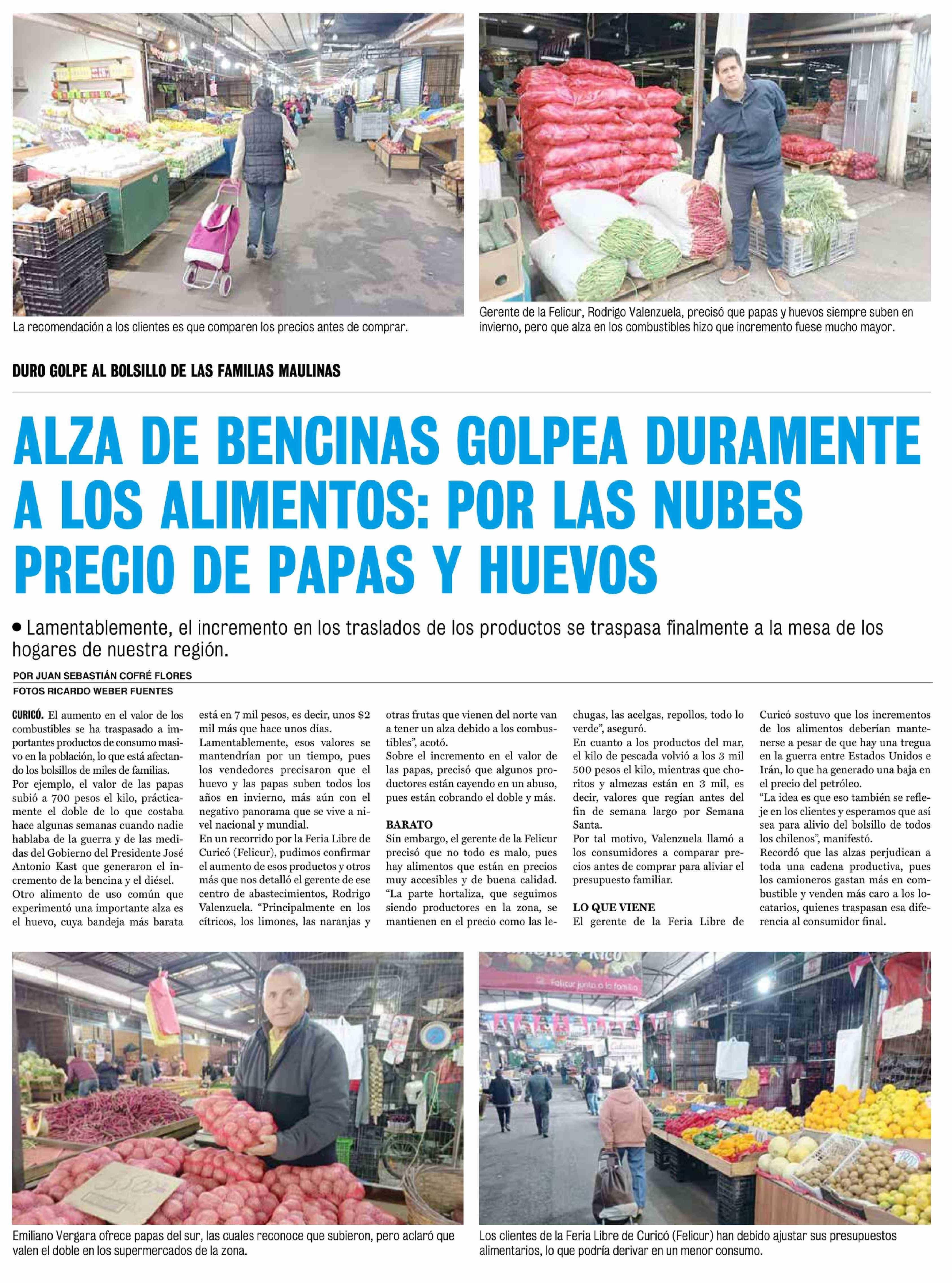ALZA DE BENCINAS GOLPEA DURAMENTE A LOS ALIMENTOS: POR LAS NUBES PRECIO DE PAPAS Y HUEVOS