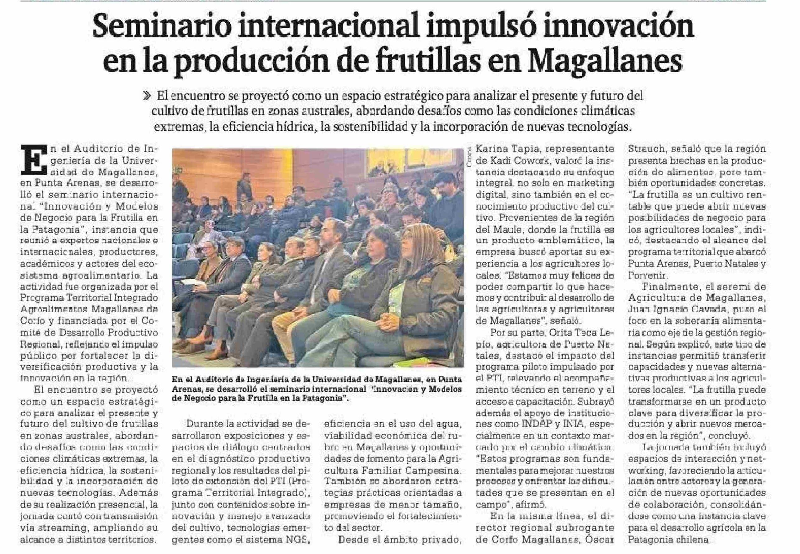 Seminario internacional impulsó innovación en la producción de frutillas en Magallanes