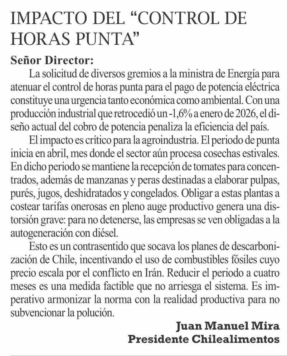 Título: Cartas: Impacto dEl “control dE horaS punta”