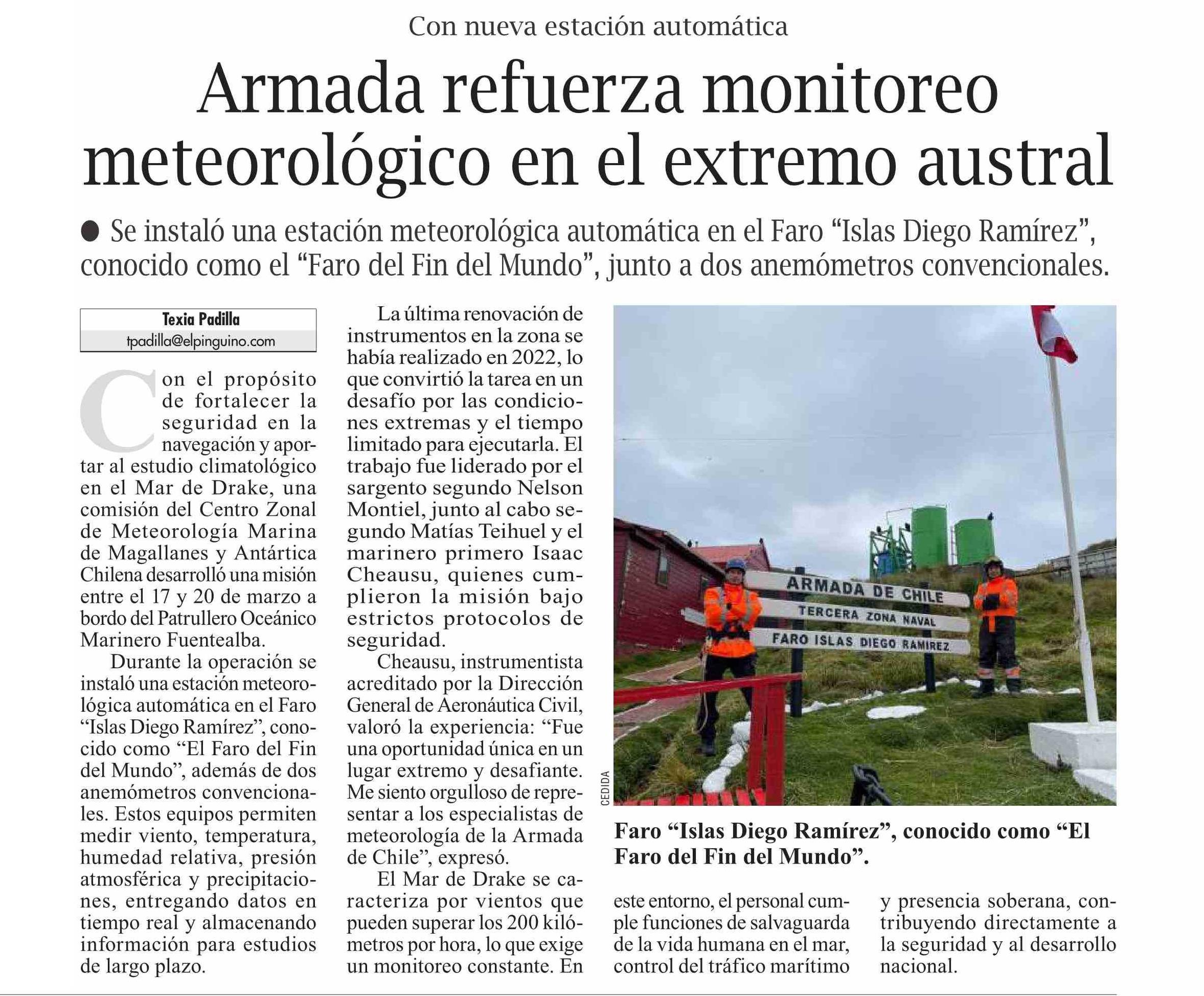 Armada refuerza monitoreo meteorológico en el extremo austral