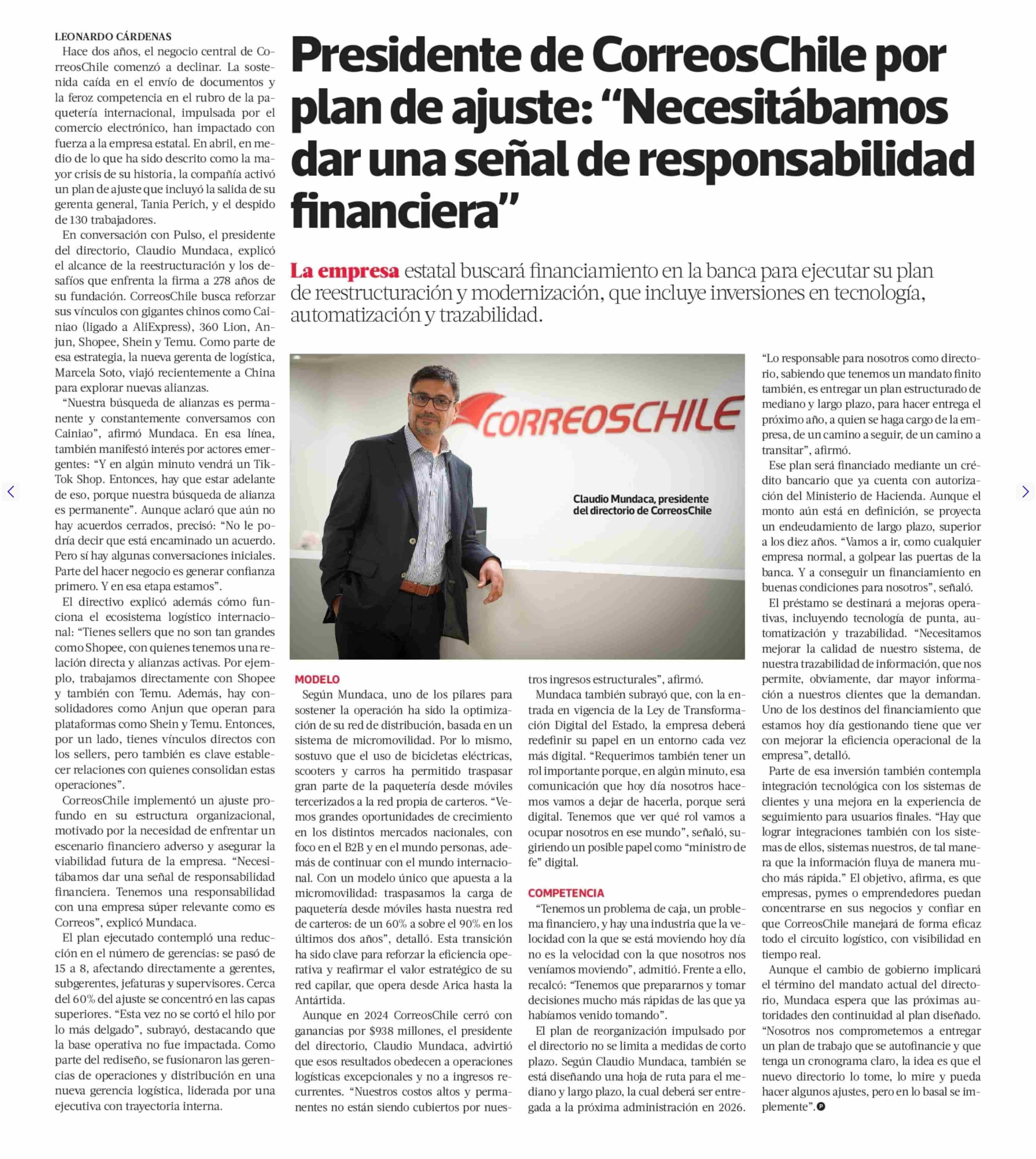 Presidente de CorreosChile por plan de ajuste: “Necesitábamos dar una señal de responsabilidad financiera”