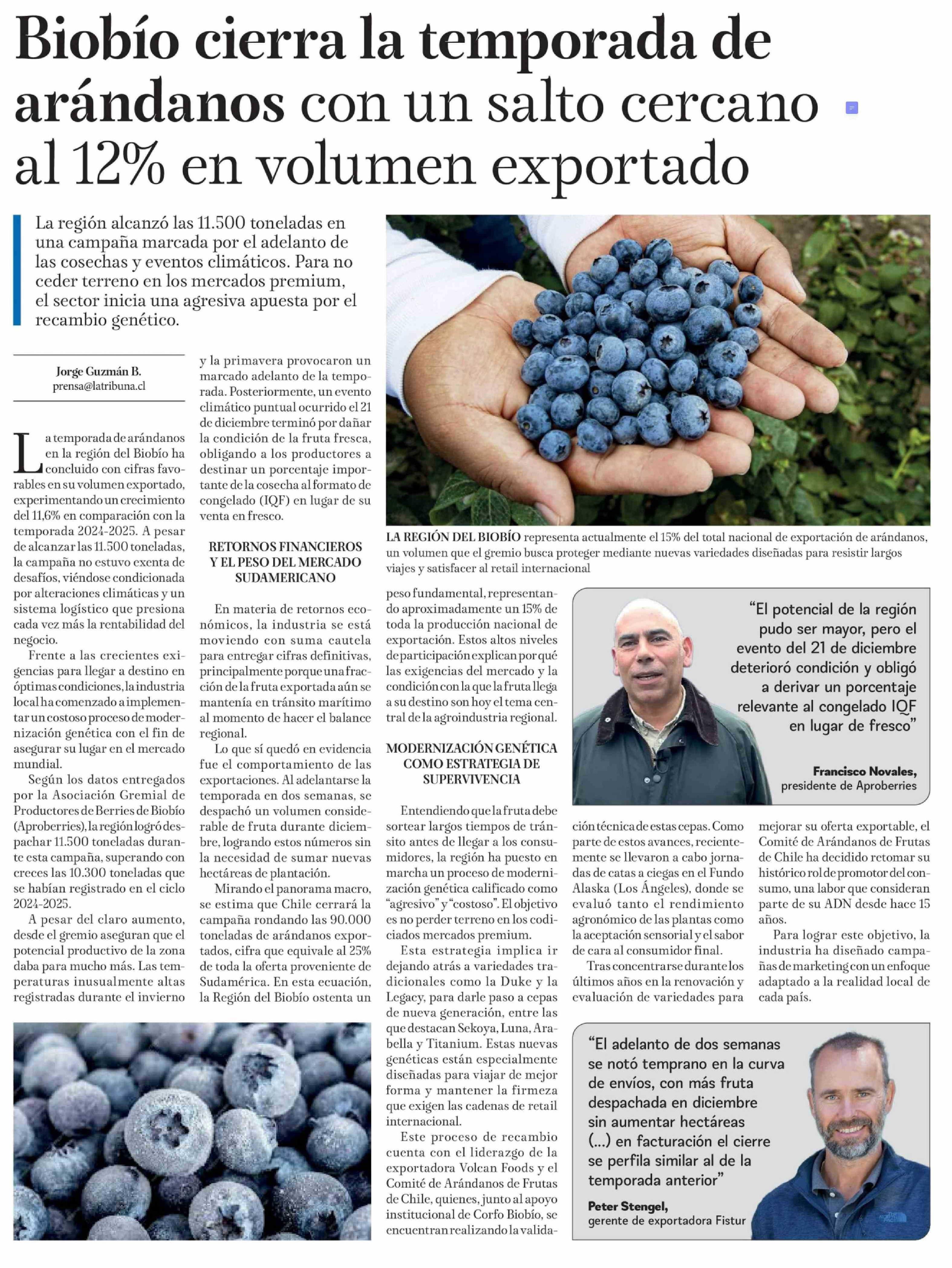 Biobío cierra la temporada de arándanos con un salto cercano al 12% en volumen exportado
