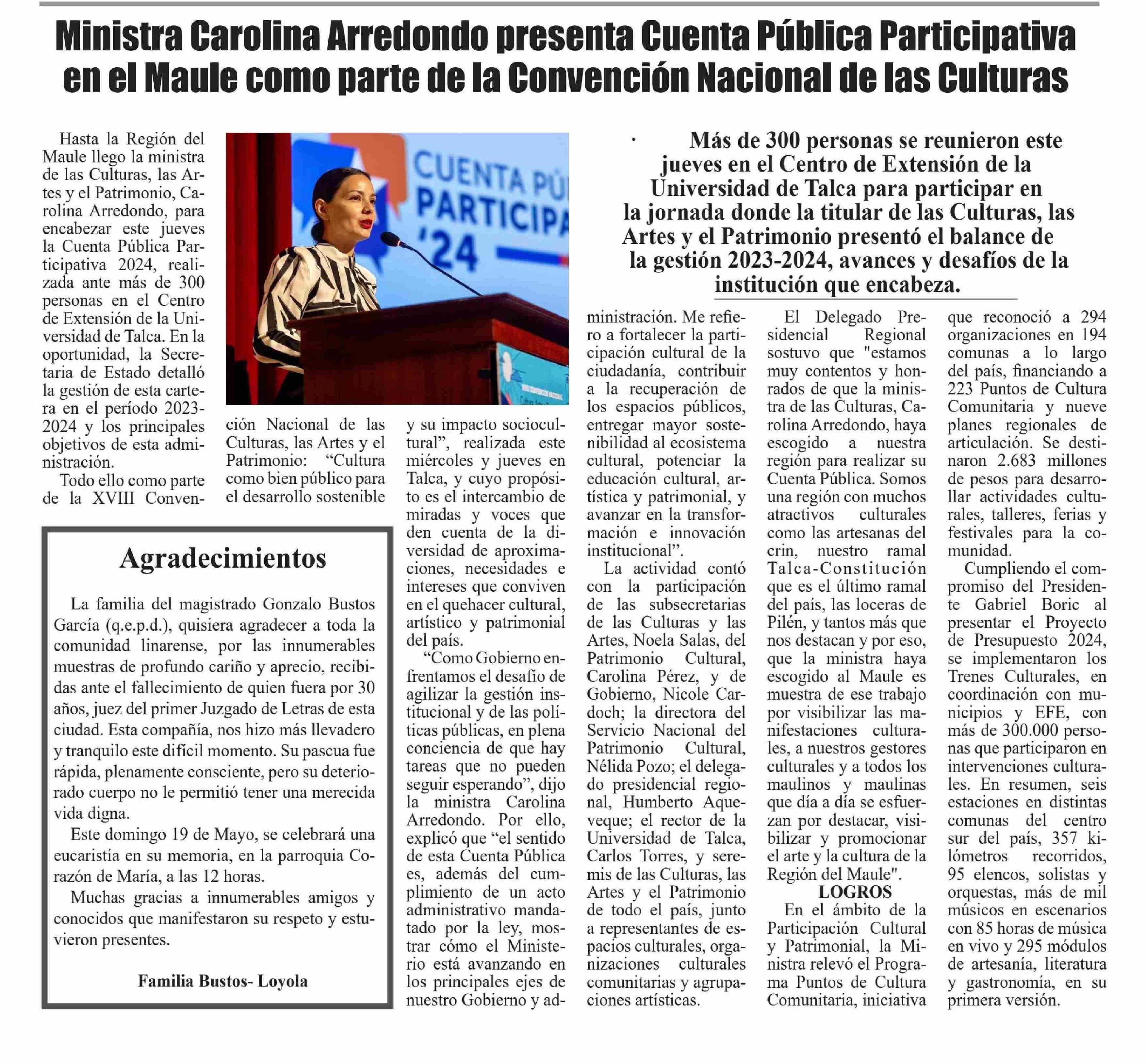 Ministra Carolina Arredondo presenta Cuenta Pública Participativa en el Maule como parte de la Convención Nacional de las Culturas