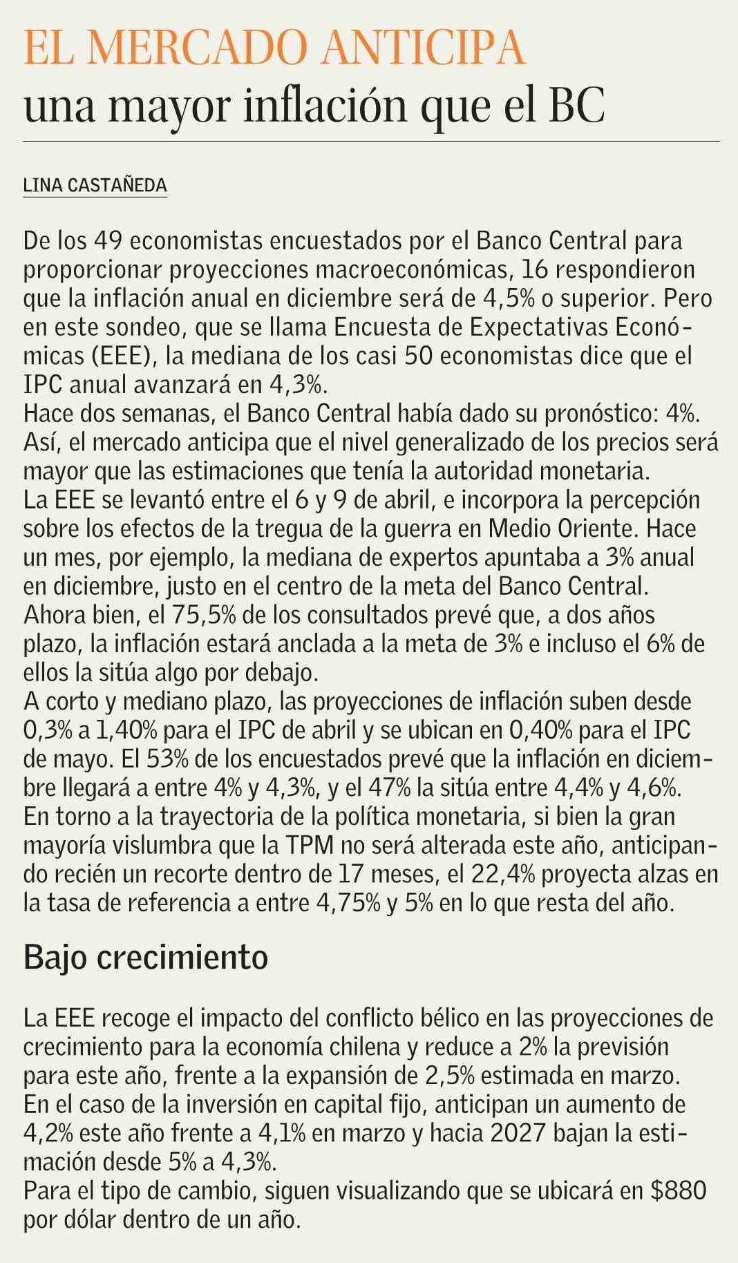 EL MERCADO ANTICIPA una mayor inflación que el BC
