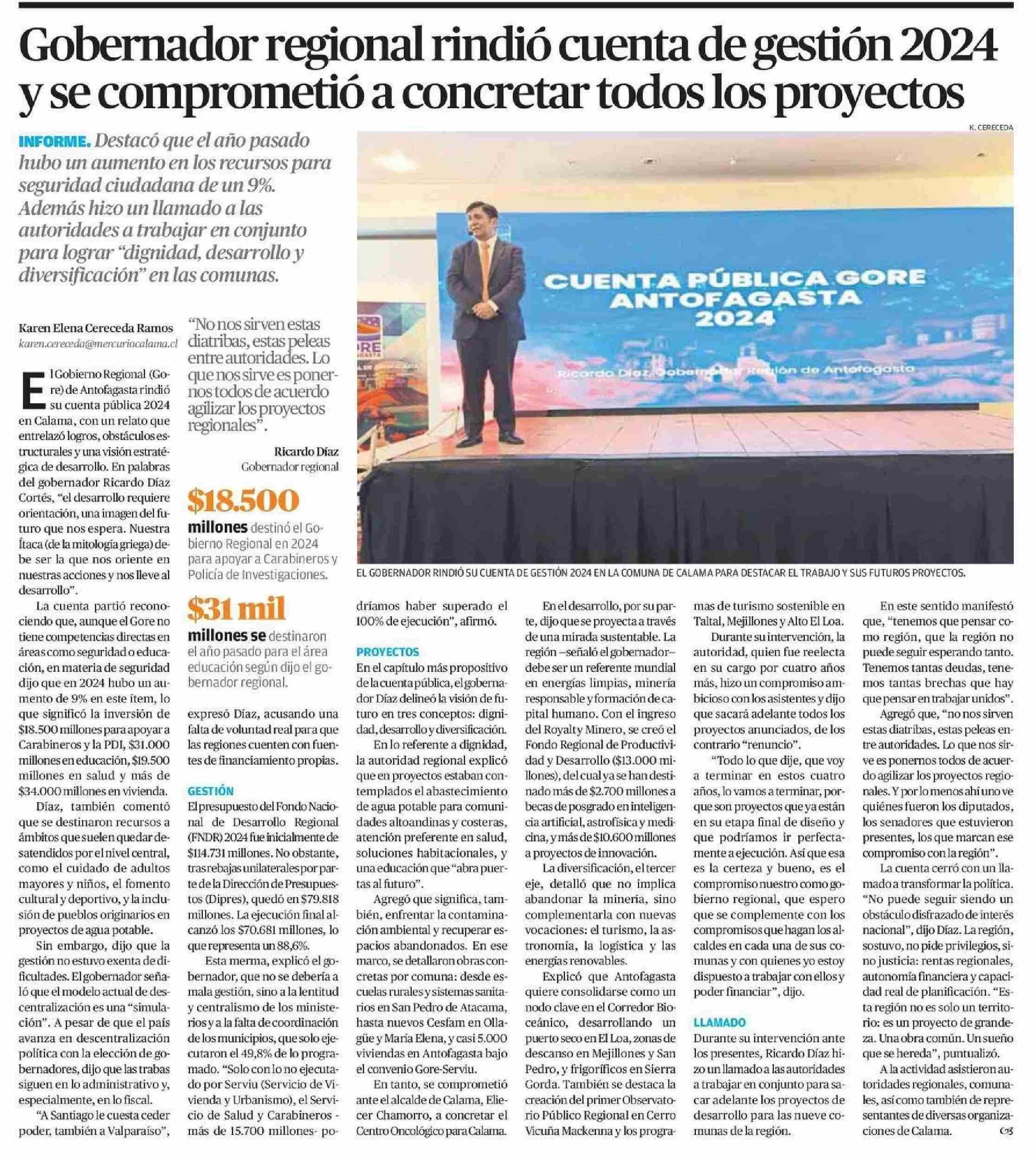 Gobernador regional rindió cuenta de gestión 2024 y se comprometió a concretar todos los proyectos