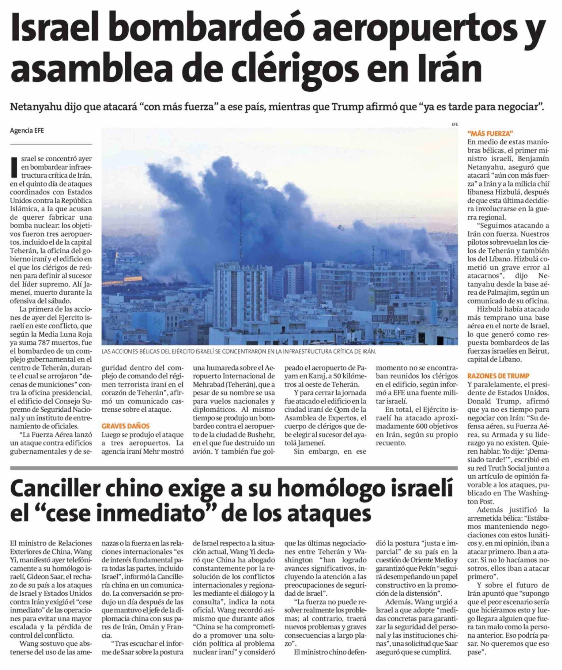 Israel bombardeo aeropuertos y asamblea de clérigos en Irán