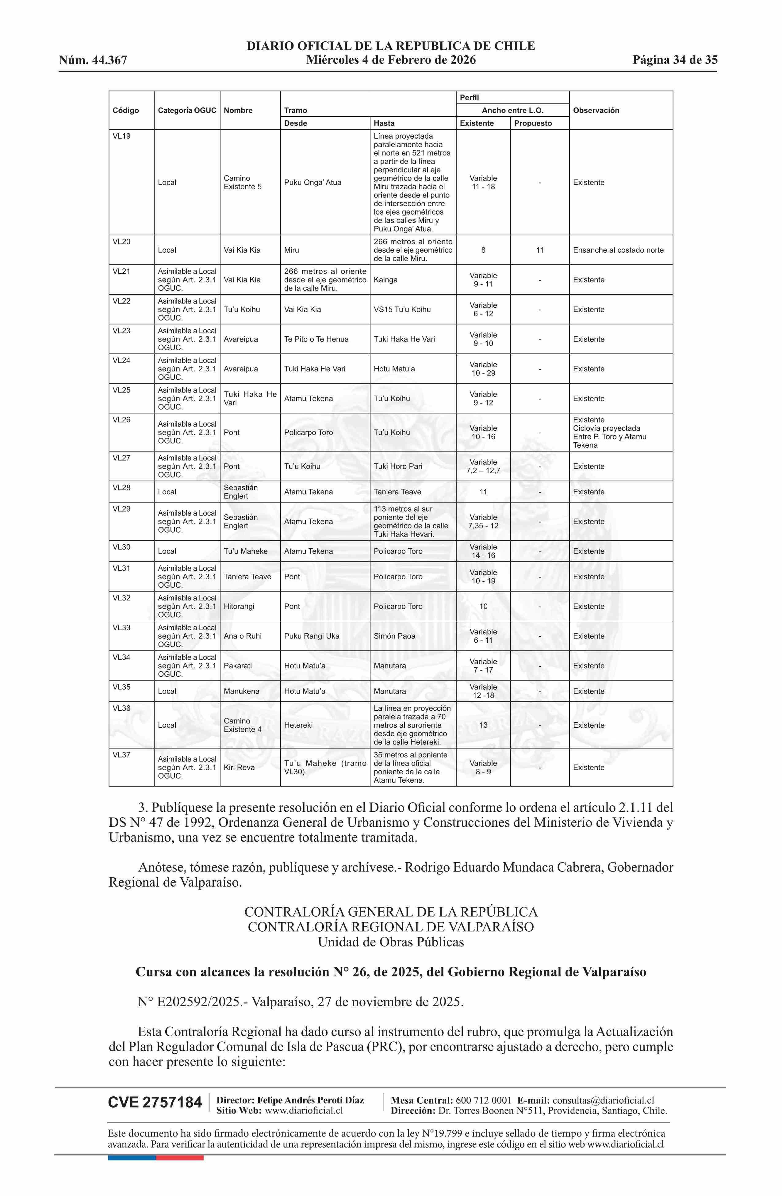 Título: Resolución número 26, de 2025.- Promulga actualización del Plan Regulador Comunal de Isla de Pascua