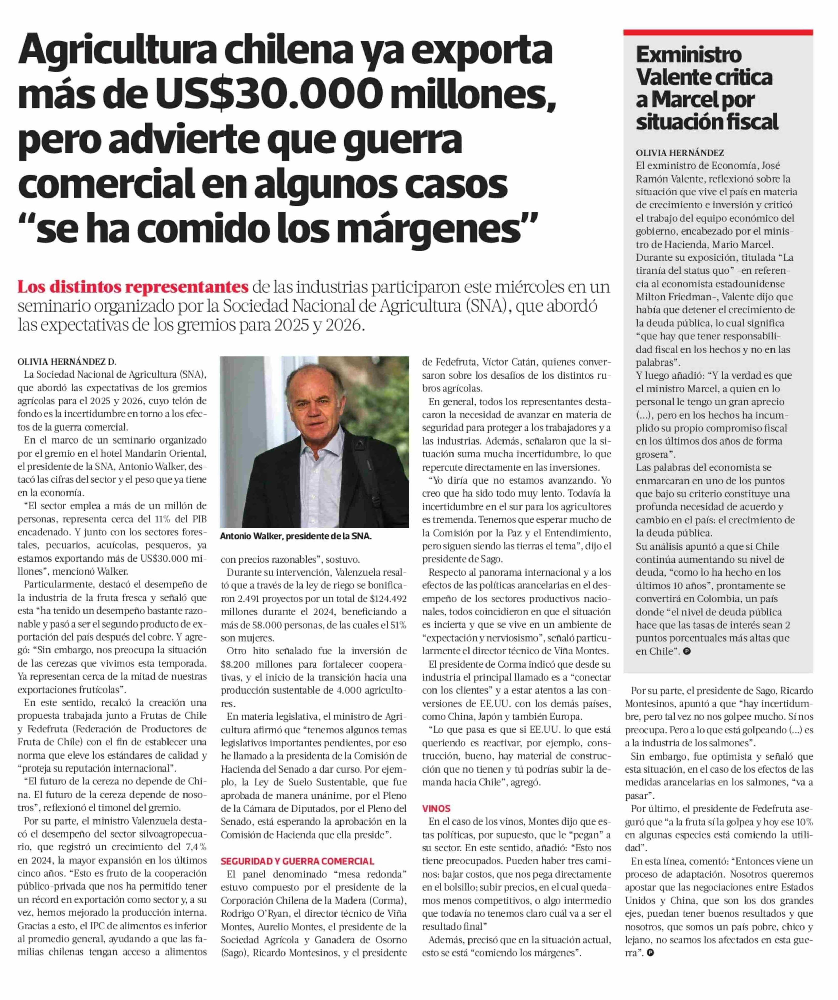 Agricultura chilena ya exporta más de US$30.000 millones, pero advierte que guerra comercial en algunos casos “se ha comido los márgenes”