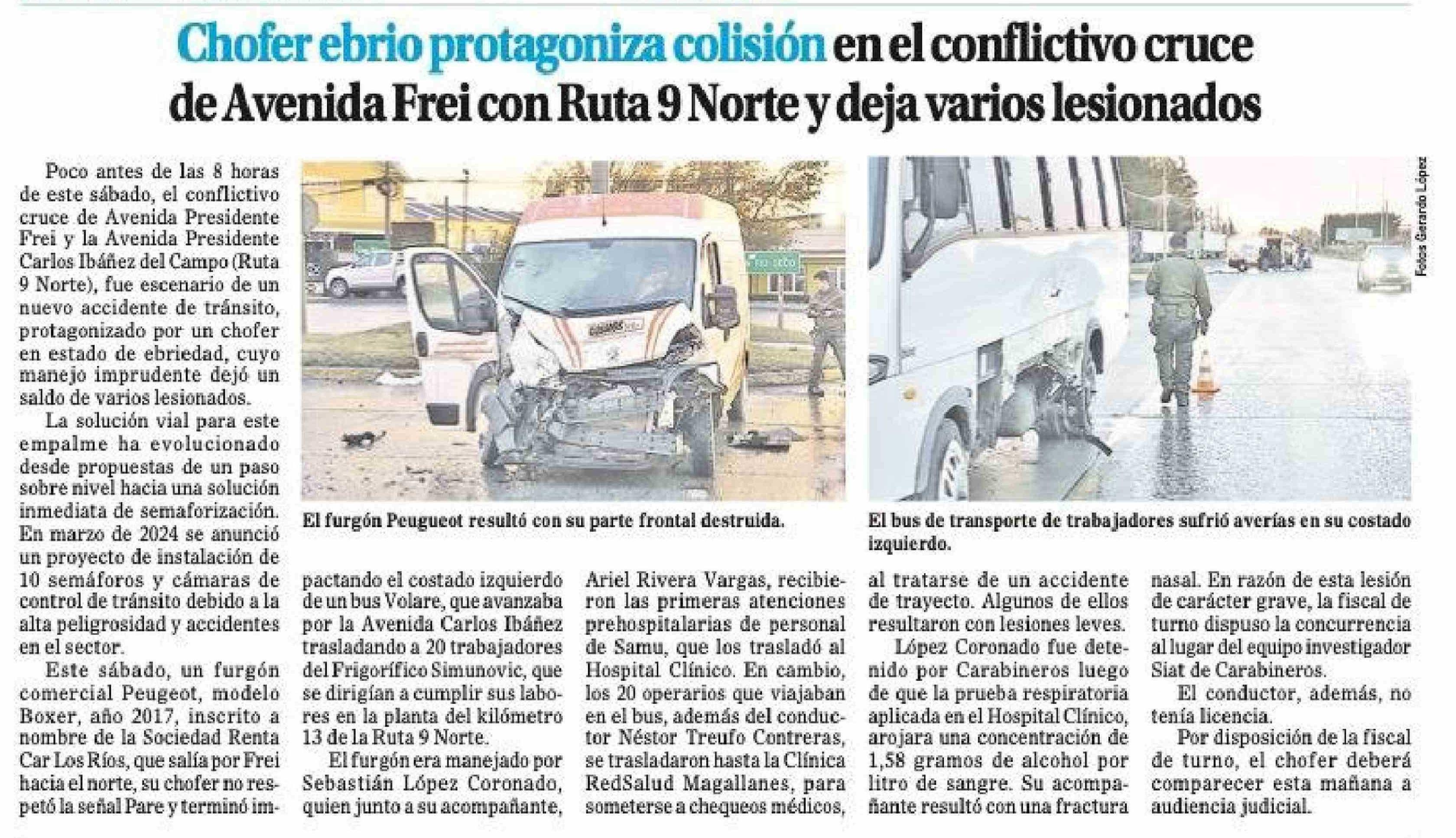 Chofer ebrio protagoniza colisión en el conflictivo cruce de Avenida Frei con Ruta 9 Norte y deja varios lesionados