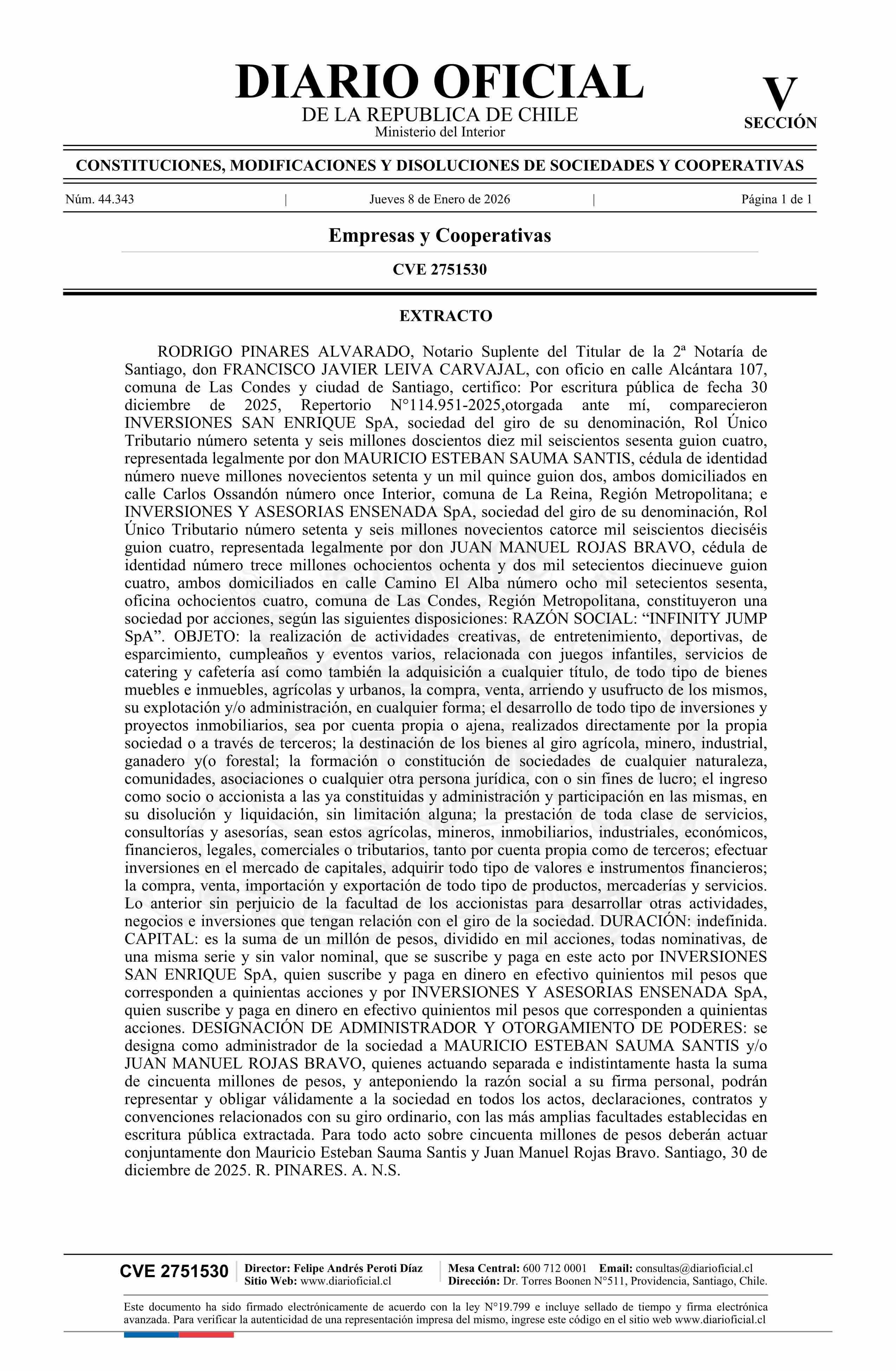 Diario Oficial Edición Electrónica (Diario Oficial de Chile - 5 Empresas Y Cooper)