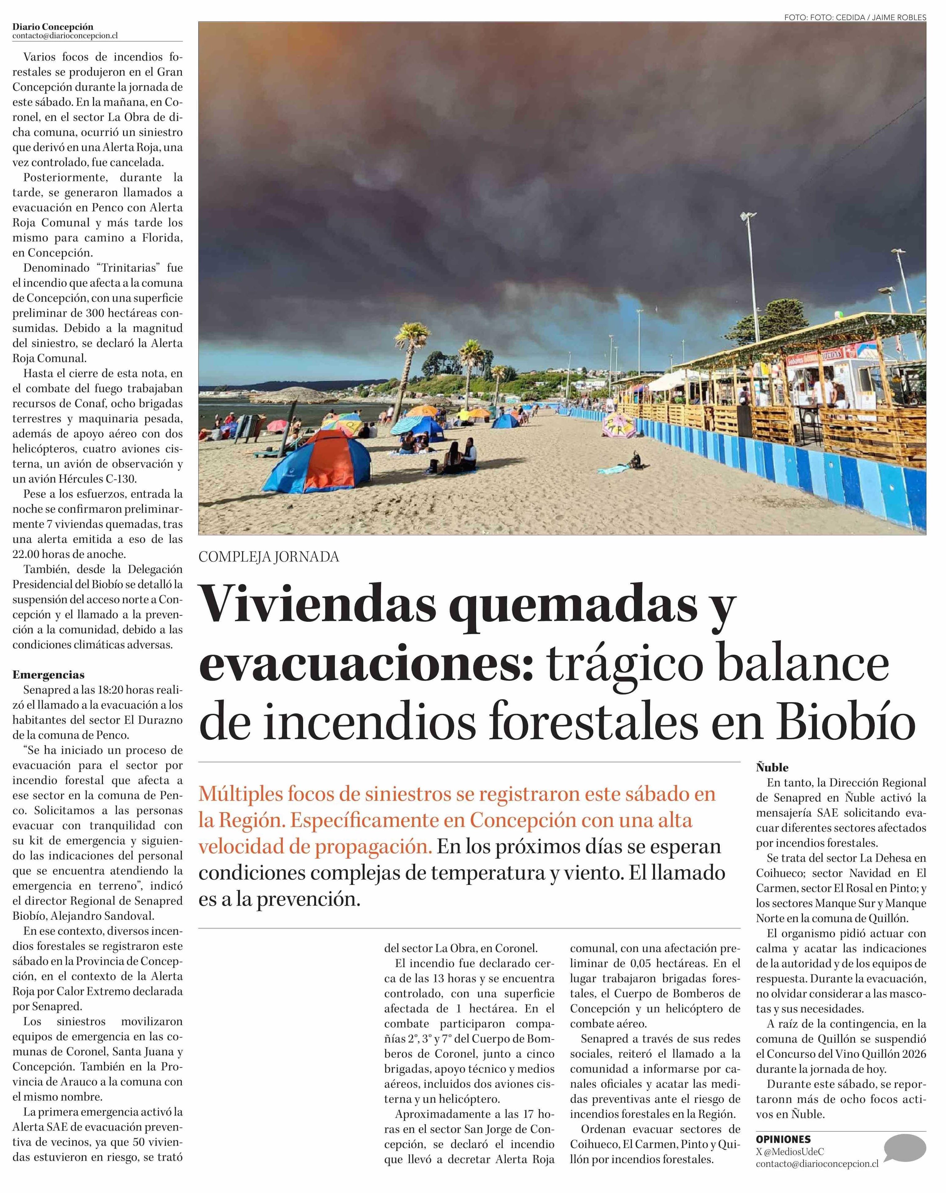 Viviendas quemadas y evacuaciones: trágico balance de incendios forestales en Biobío