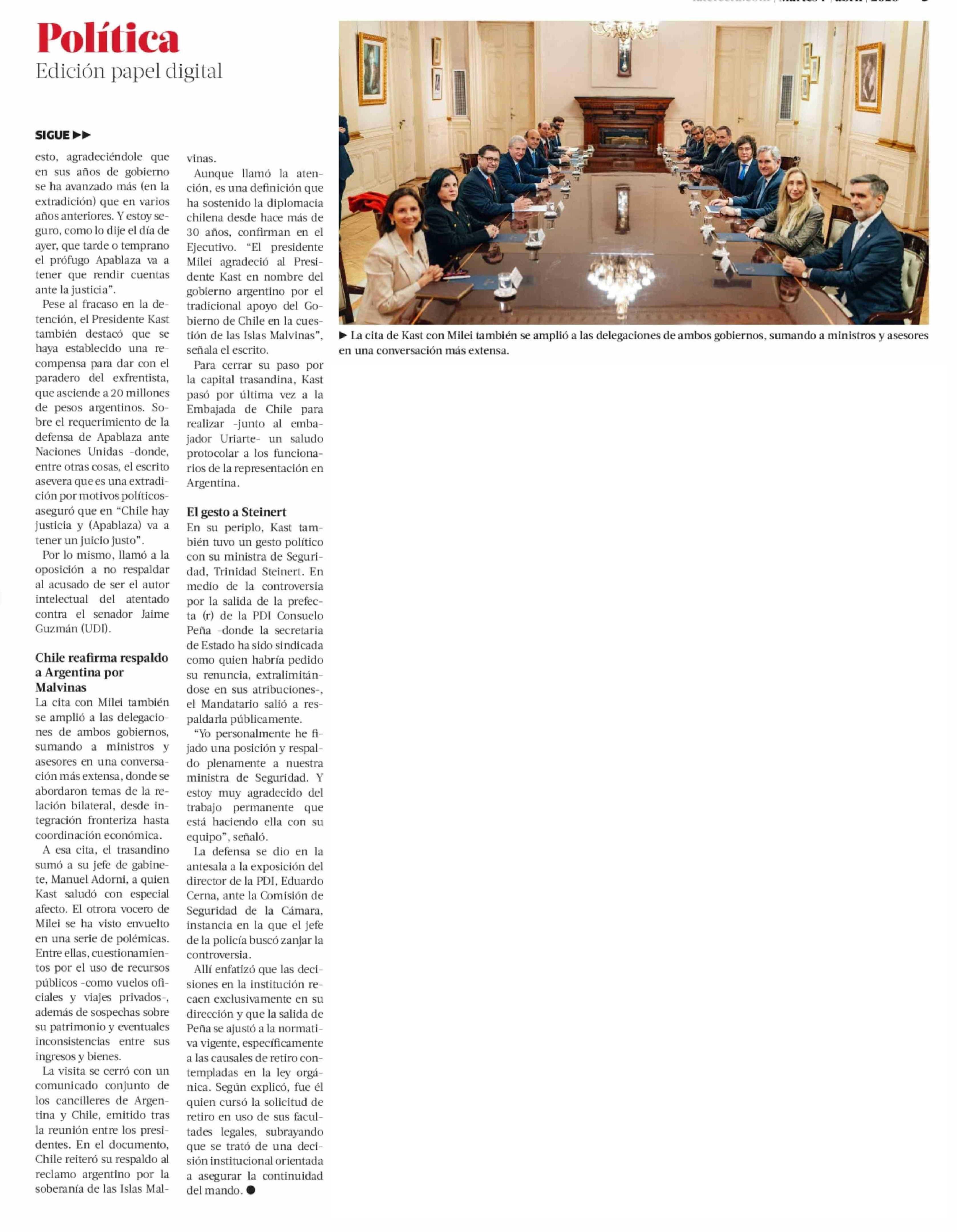 Las 16 horas de Kast en Argentina: abordó caso Apablaza con Milei, reafirmó apoyo por Malvinas y respaldó a ministra Steinert