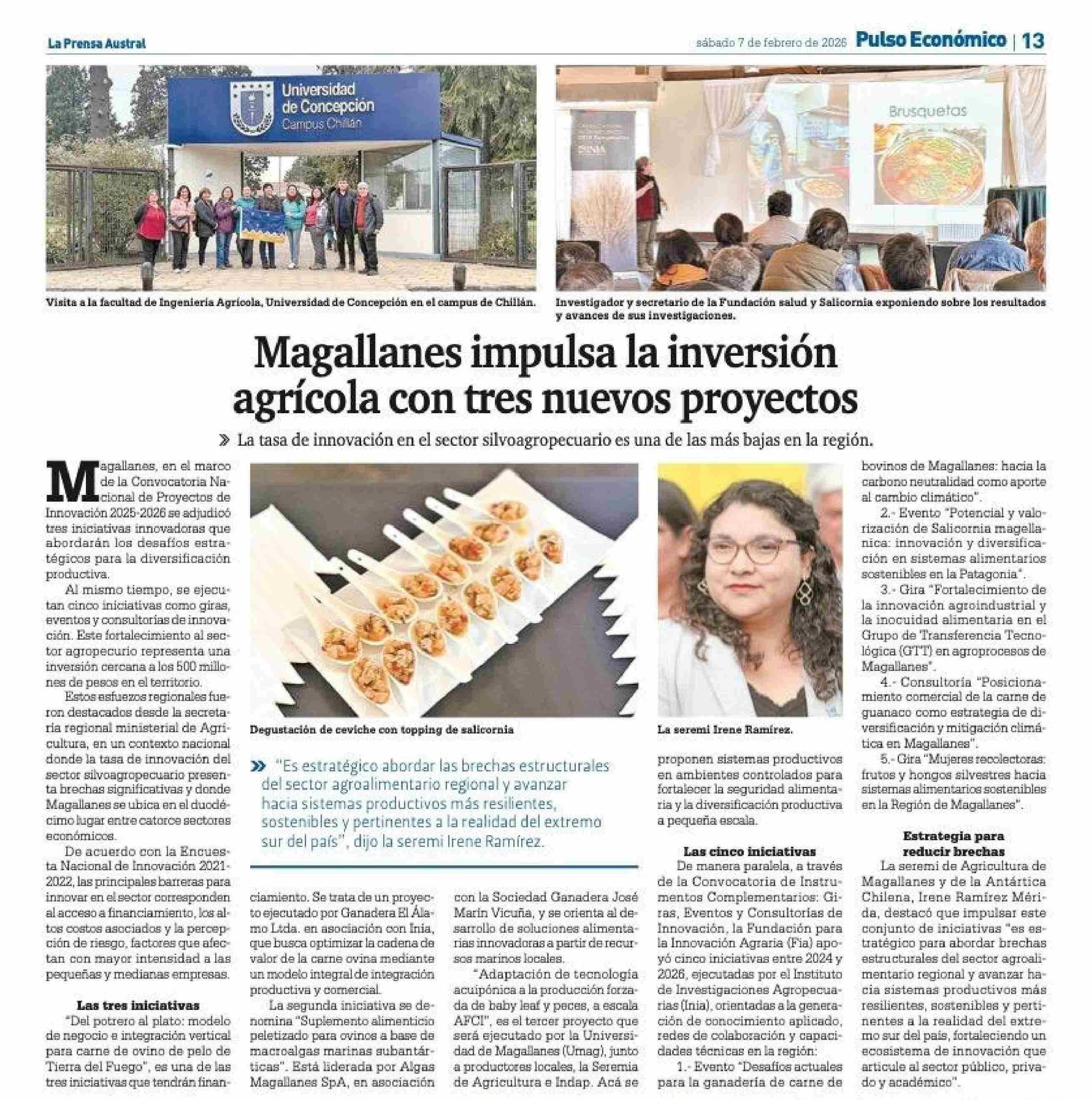 Magallanes impulsa la inversión agrícola con tres nuevos proyectos