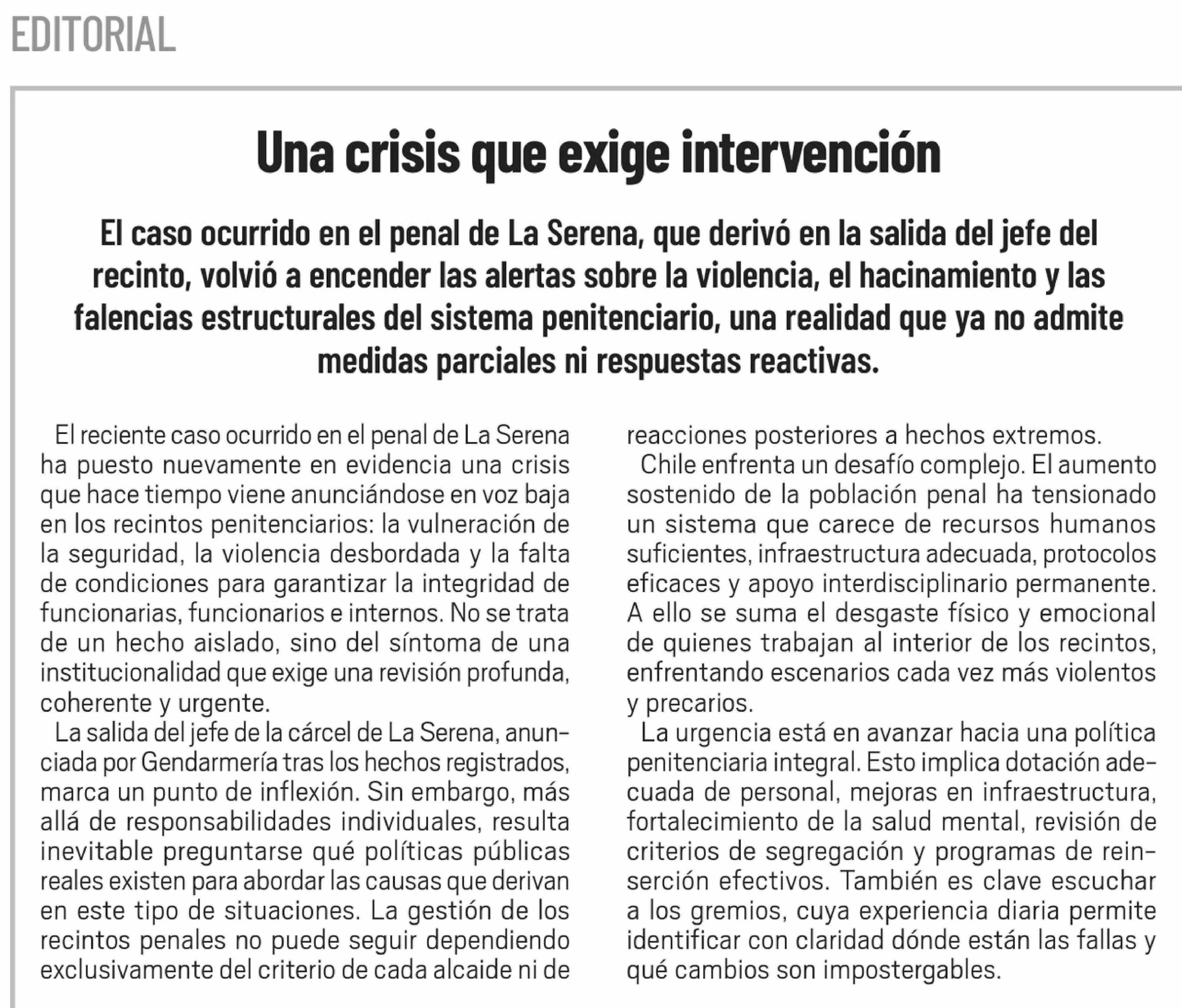 Título: Editorial: Una crisis que exige intervención