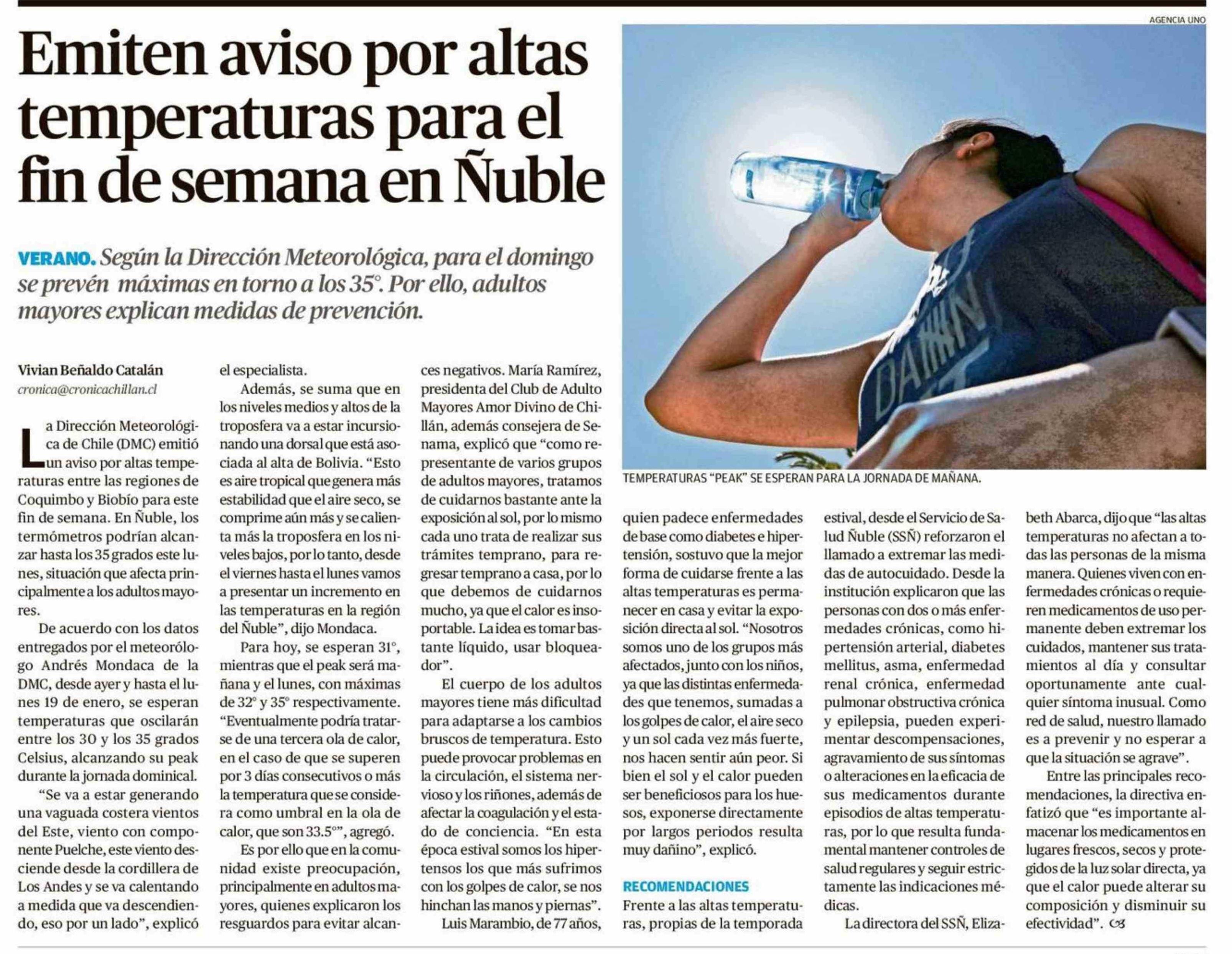 Emiten aviso por altas temperaturas para el fin de semana en Nuble