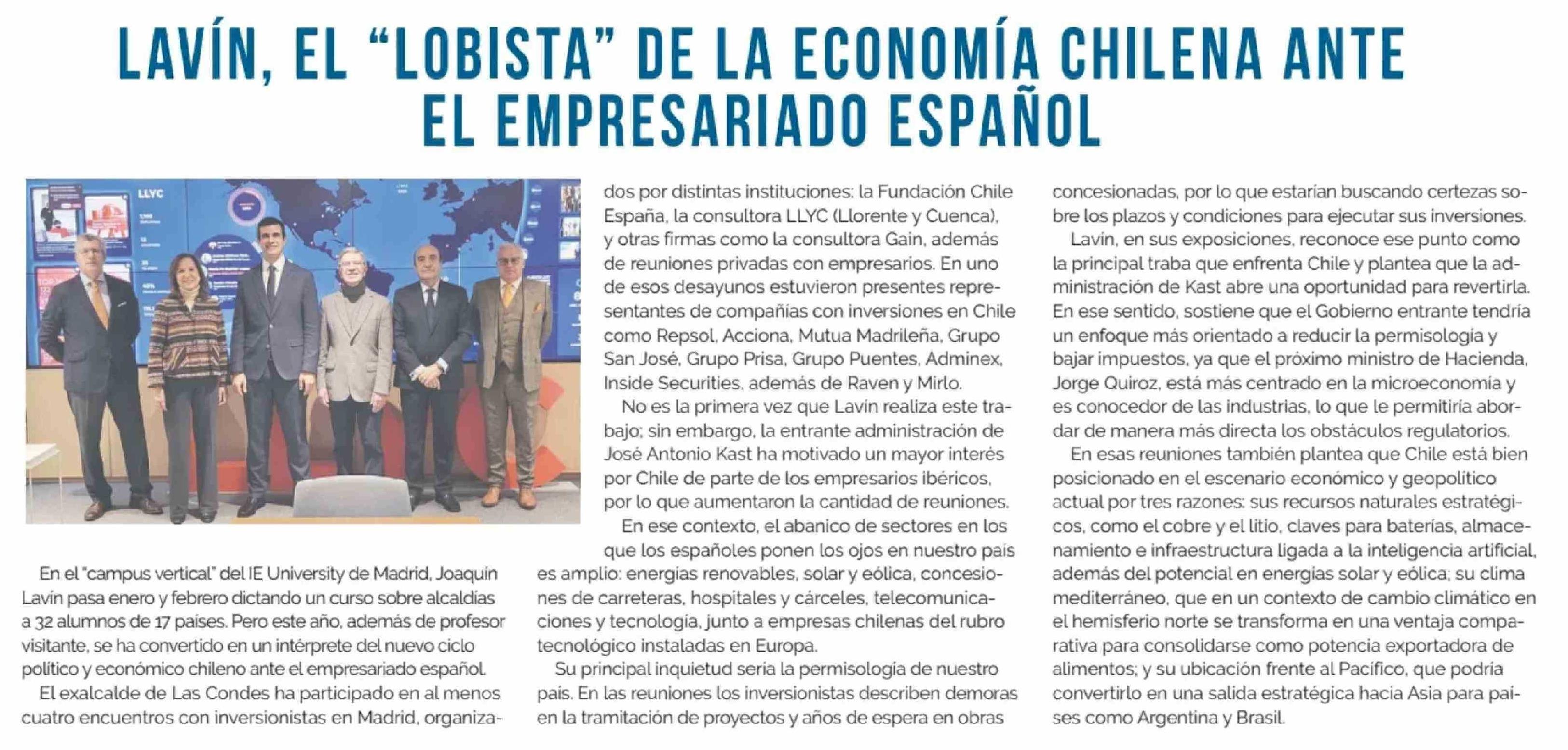 LAVÍN, EL "LOBISTA" DE LA ECONOMÍA CHILENA ANTE EL EMPRESARIADO ESPAÑOL
