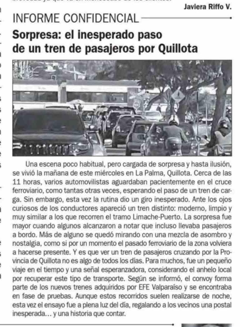 Sorpresa: el inesperado paso de un tren de pasajeros por Quillota