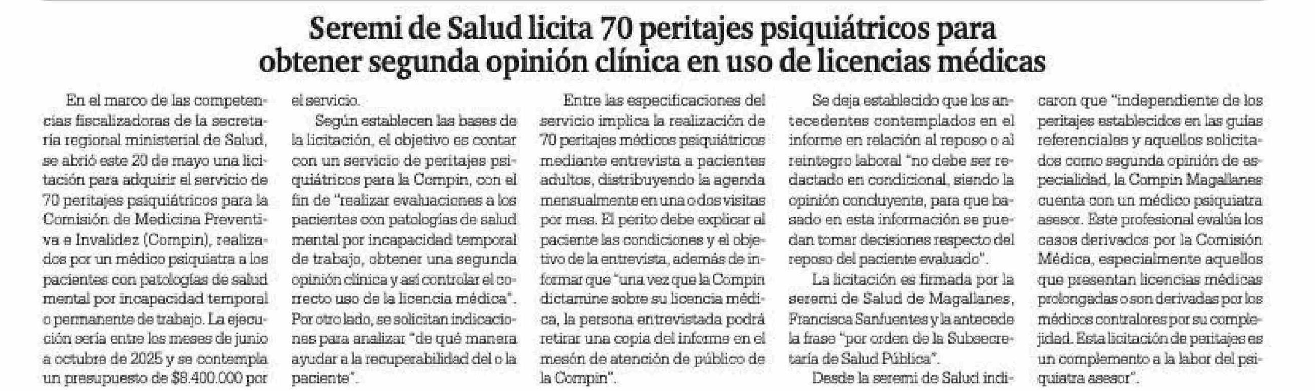 Seremi de Salud licita 70 peritajes psiquiátricos para obtener segunda opinión clínica en uso de licencias médicas