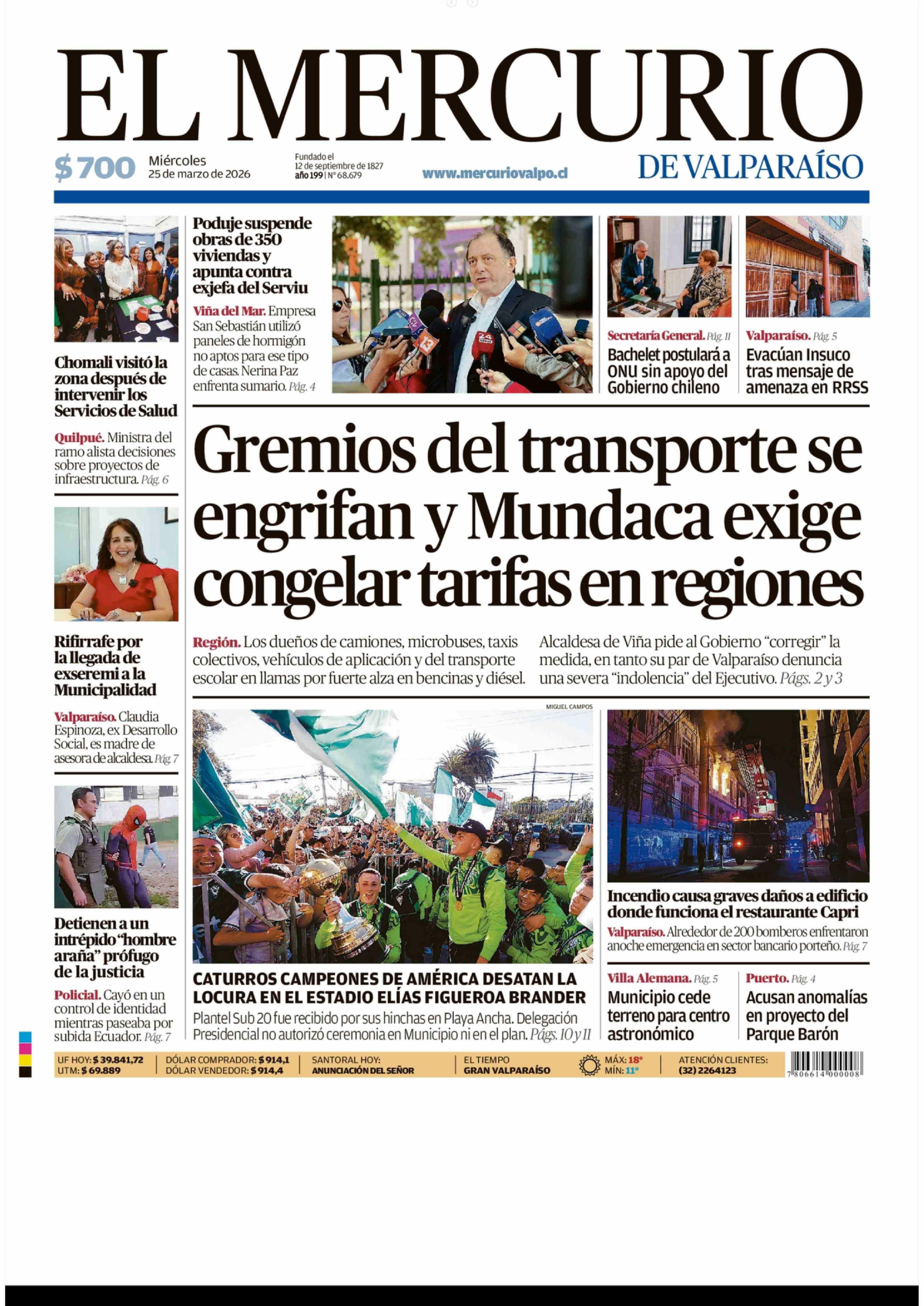 PORTADA EL MERCURIO DE VALPARAÍSO CHILE