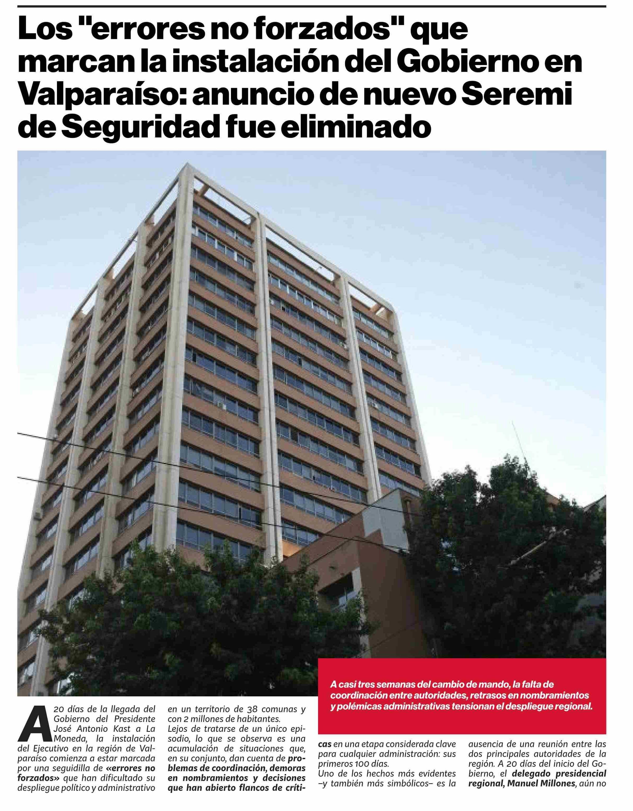 Los "errores no forzados” que marcan la instalación del Gobierno en Valparaíso: anuncio de nuevo Seremi de Seguridad fue eliminado