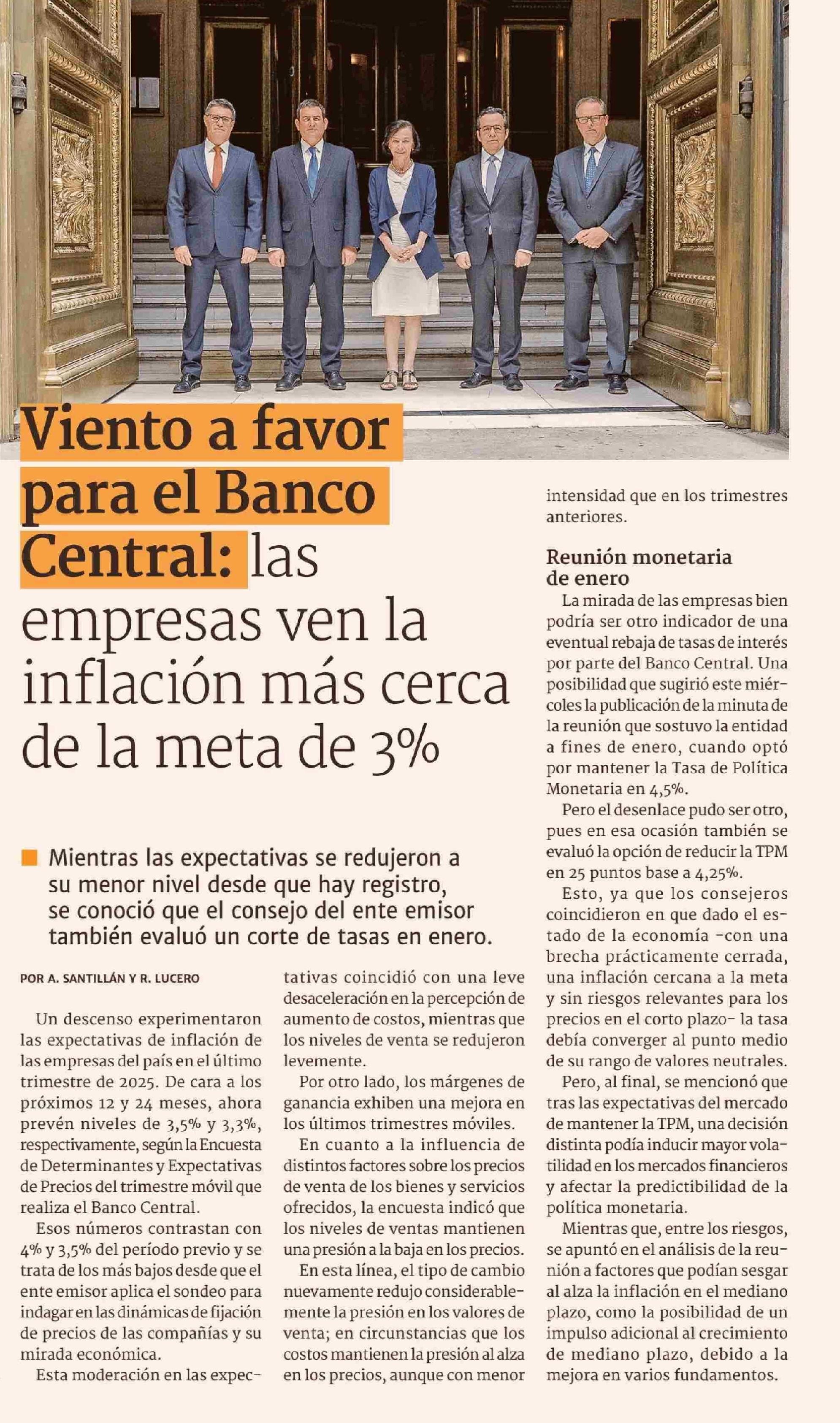 Viento a favor para el Banco Central: las empresas ven la inflación más cerca de la meta de 3%