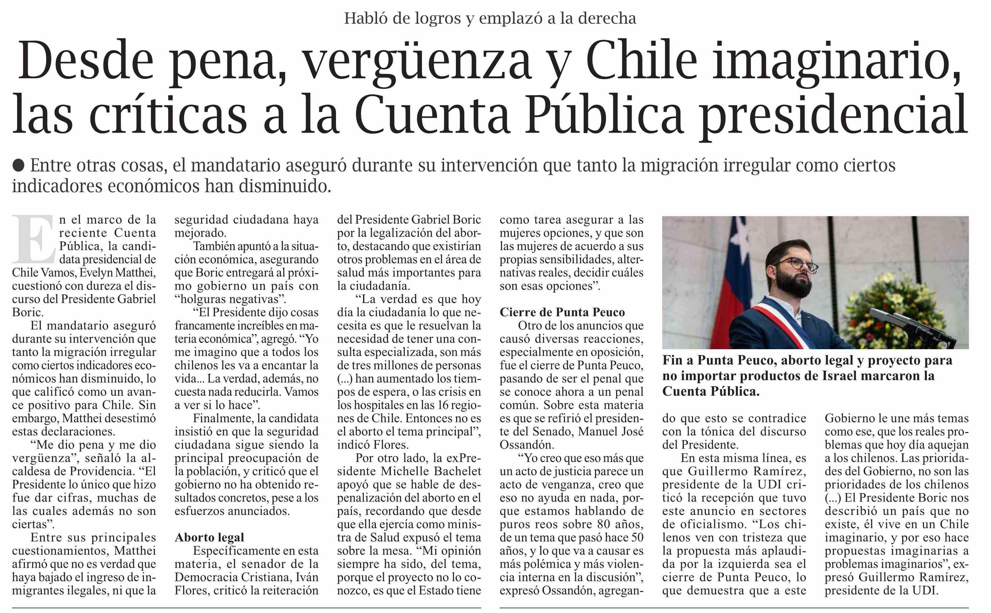 Título: Desde pena, vergüenza y Chile imaginario, las críticas a la Cuenta Pública presidencial