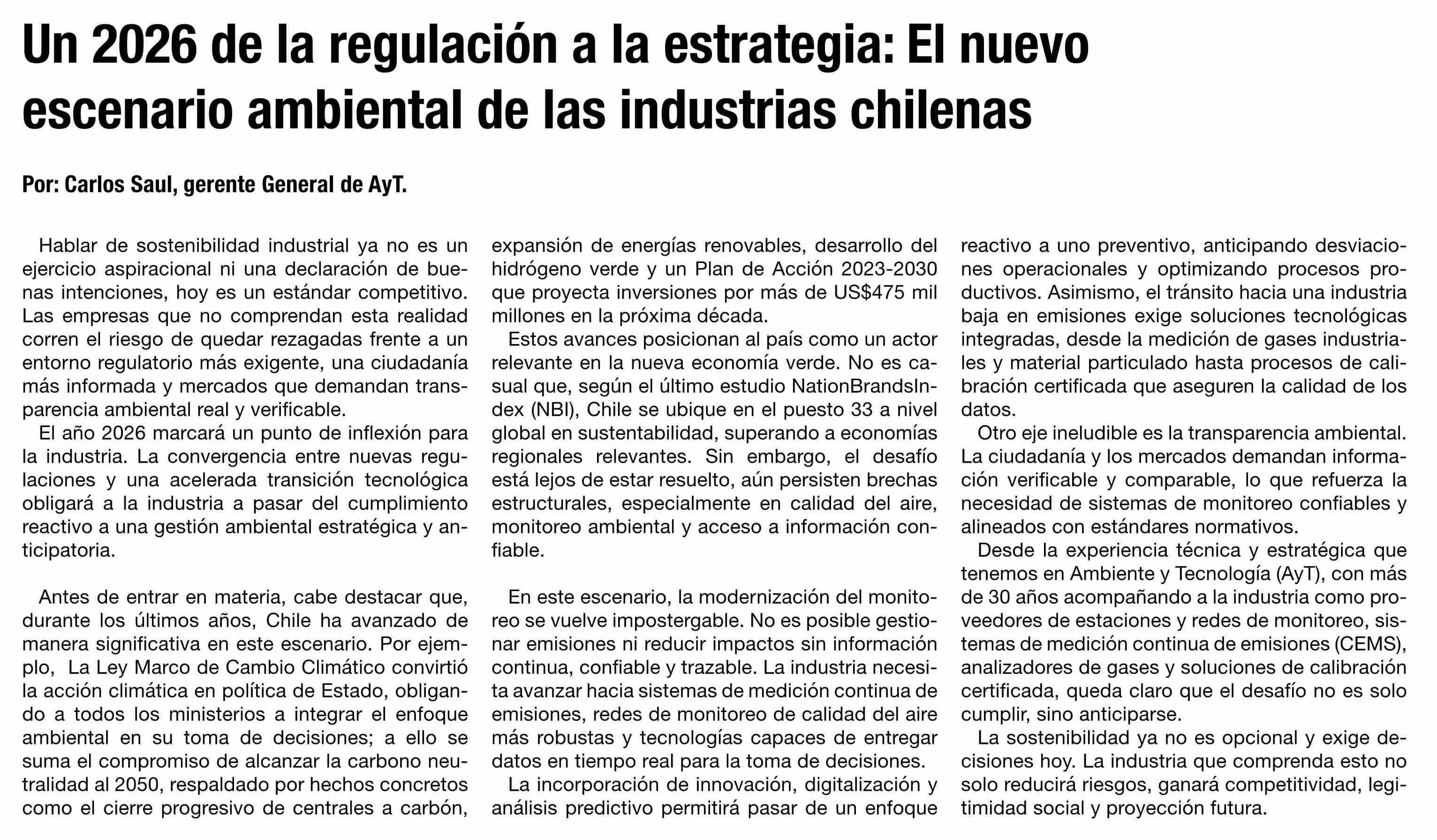 Un 2026 de la regulación a la estrategia: El nuevo escenario ambiental de las industrias chilenas